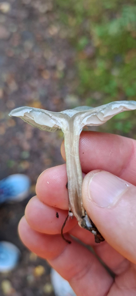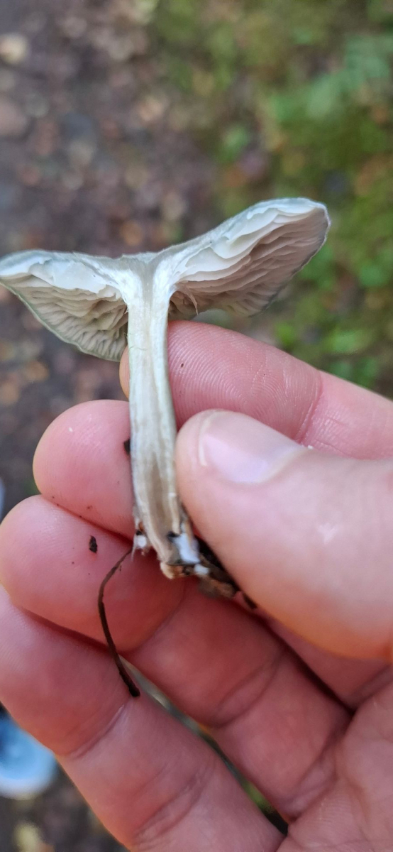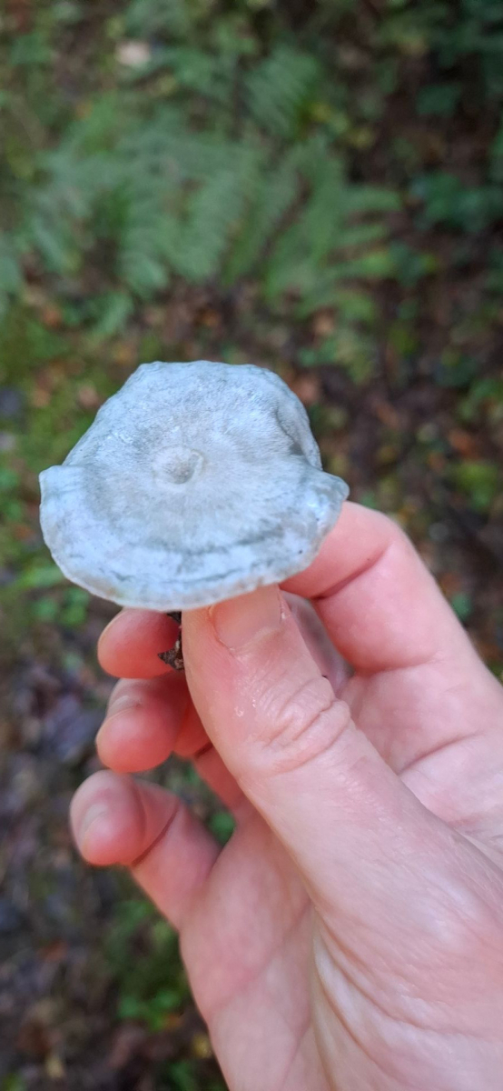 vor einigen Tagen habe ich ein paar Pilze entdeckt, die ich nicht bestimmen konnte. Also, die Fotos lassen es eher gräulich erscheinen, aber es war doch eher so eine Art Stahlblau (die Hutoberseite). Was den Pilz für mich so interessant macht, war sein Geruch. Kann ihn schwer beschreiben, aber es war, als stünde ich in der Parfumabteilung eines Kaufhauses.