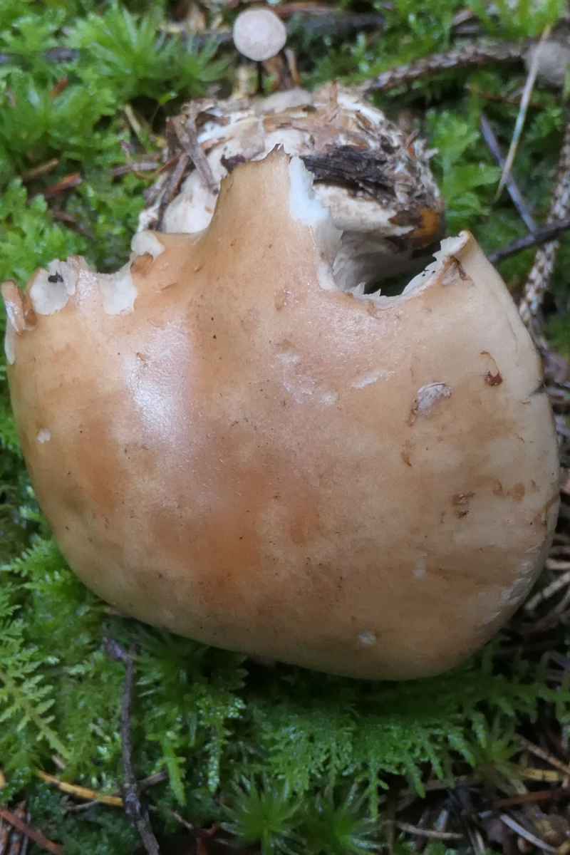 Am Stiel scheinen noch Velumreste vorhanden, am Hut sind keine zu erkennen;