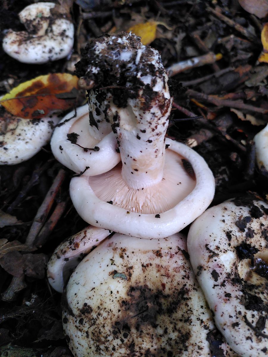 Das hier würde ich für Rosascheckige Milchlinge halten. Die standen in Massen am Wegrand, Begleitbäume weiß ich leider nicht mehr. Die Fruchtkörper waren insbesondere am Hutrand zum Teil schleimig. Wärt ihr da einverstanden?