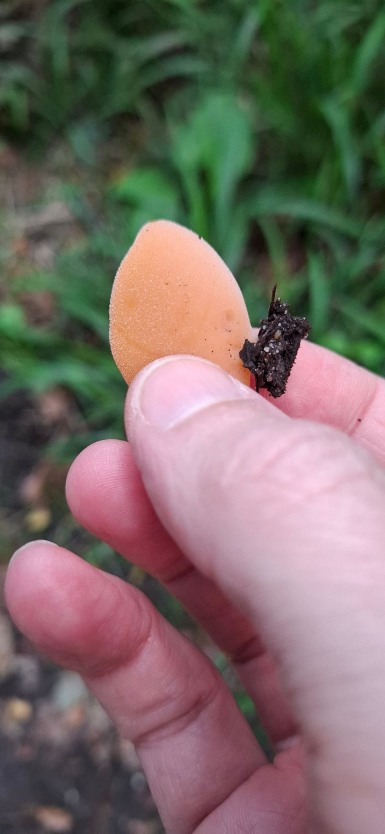 Als Name habe ich ''Orangefarbener Gallertbecherling'' in Erinnerung.
