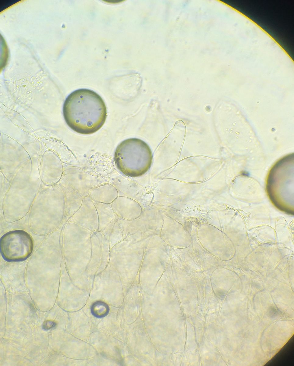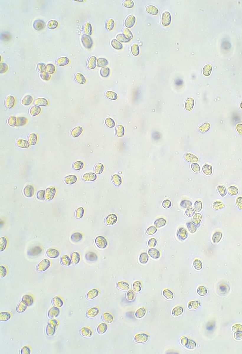 Sporen sind nur wenige zu sehen, ~tropfenförmig 8-10 µm lang