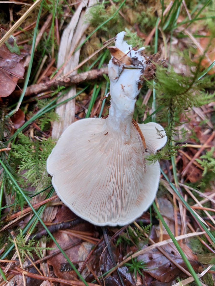 das sieht mir nach dem Mehlräsling aus, natürlich deswegen nicht gleich essen. Mehlräsling, Fliegenpilz und Pfefferröhrling sieht man im sauren Fichtenwald gerne im selben Bereich, manchmal auch zeitgleich,