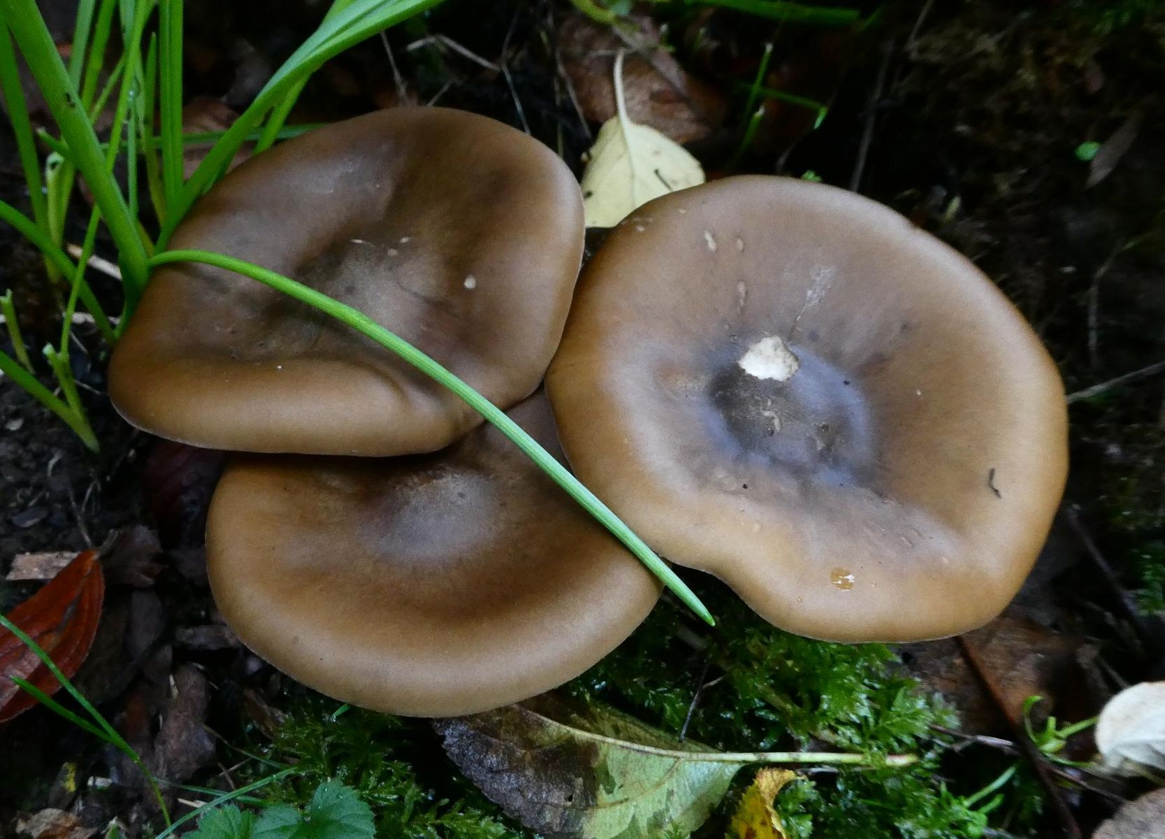 Pilze im Rasen daneben : Haselmilchlinge und Papageiensaftlinge.