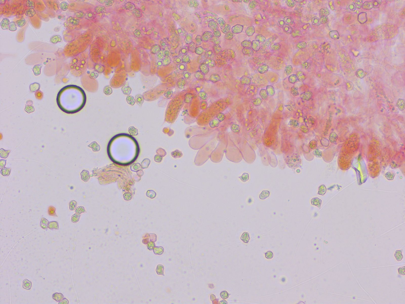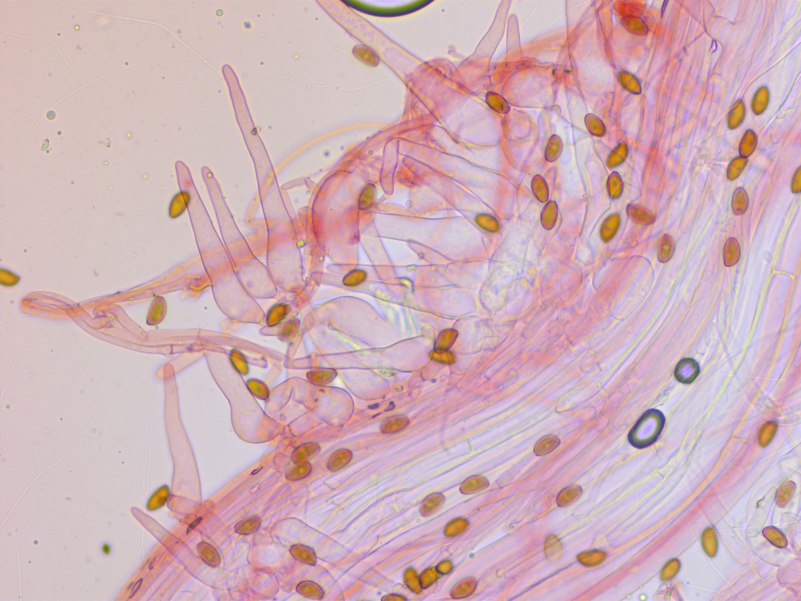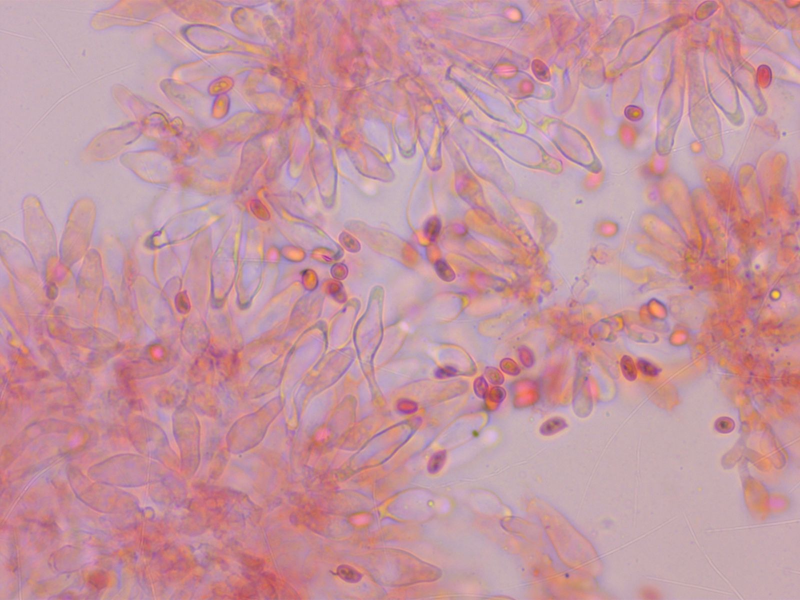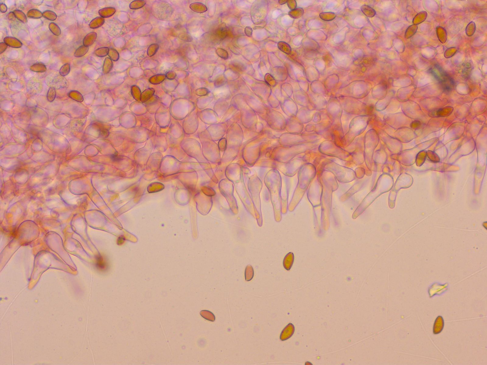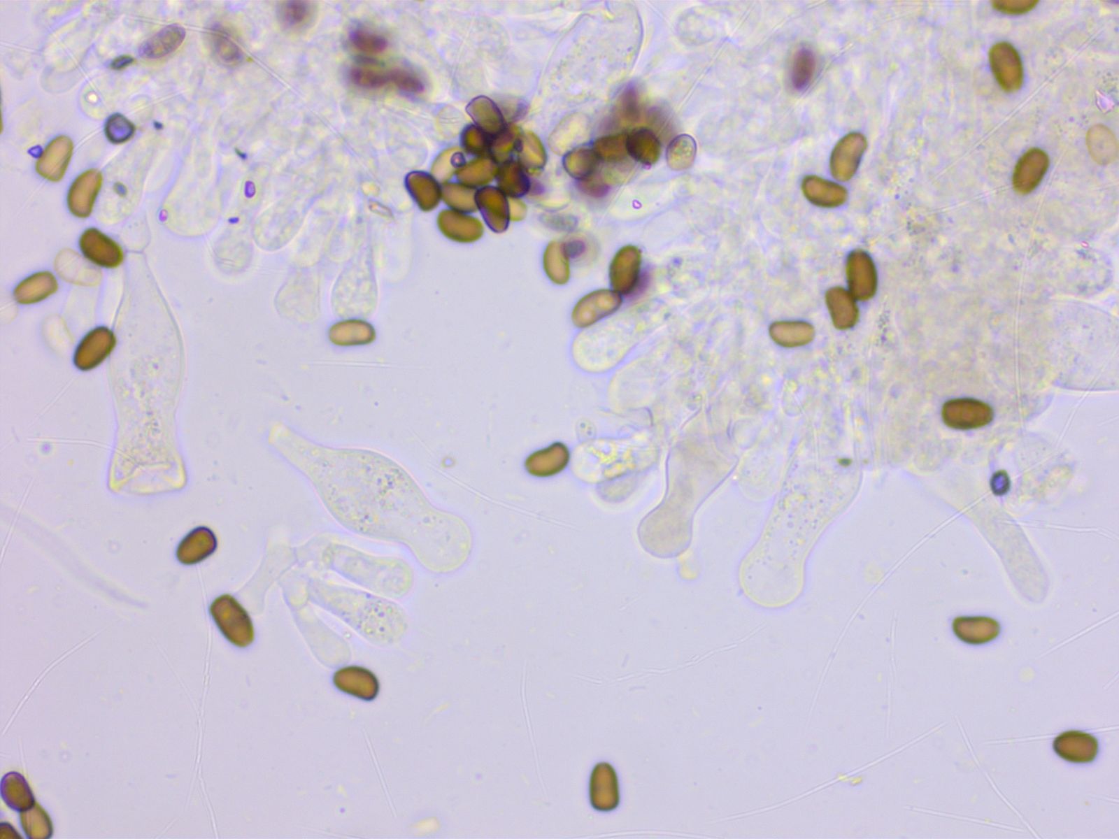 Cheilozystiden mit einer ganz typisch Form, bauchig mit spitzem Apex.