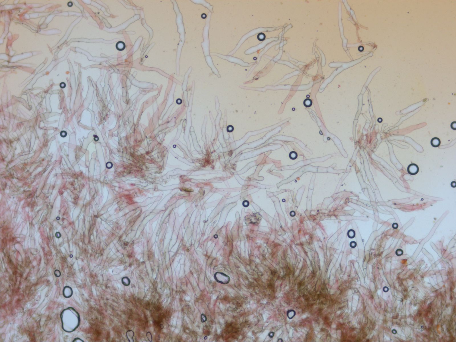 Die HDS ist trichodermal aus keuligen Zellen, eigentlich sehr ungewöhnlich für einen Trichterling.