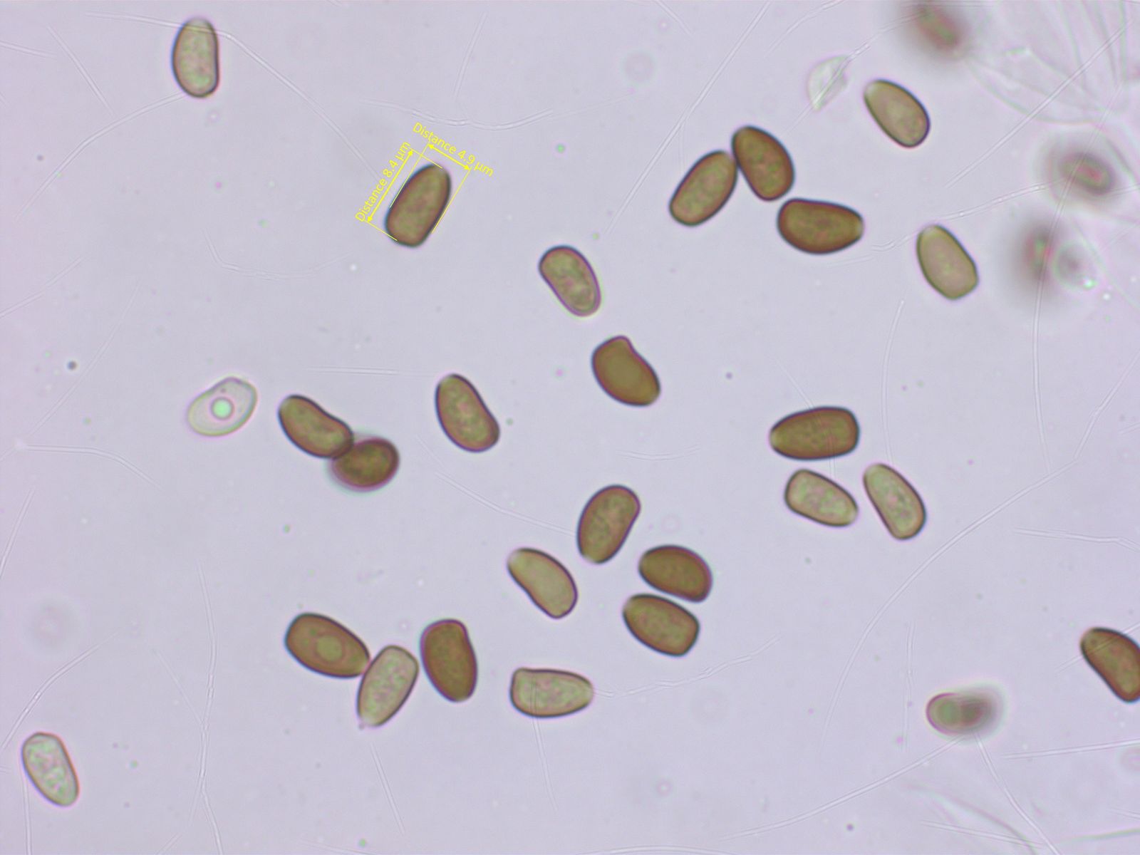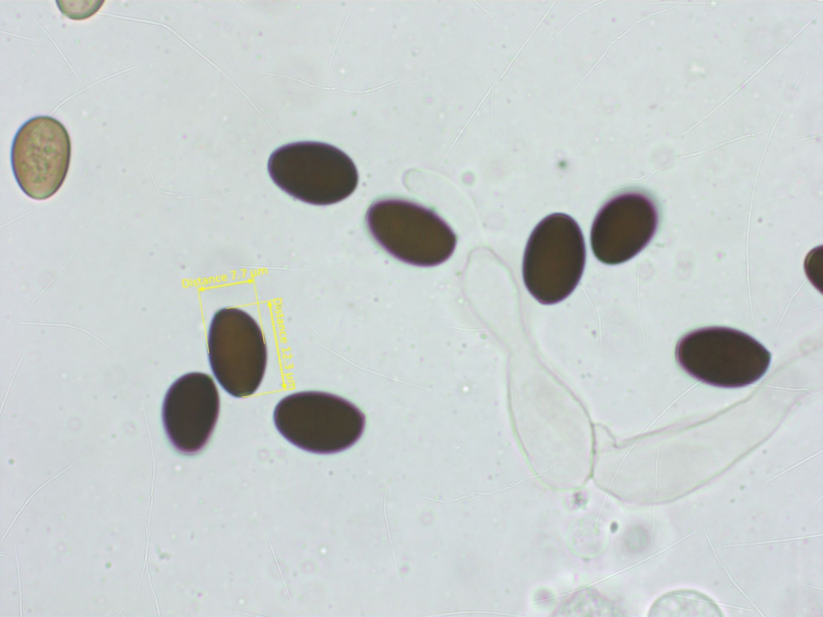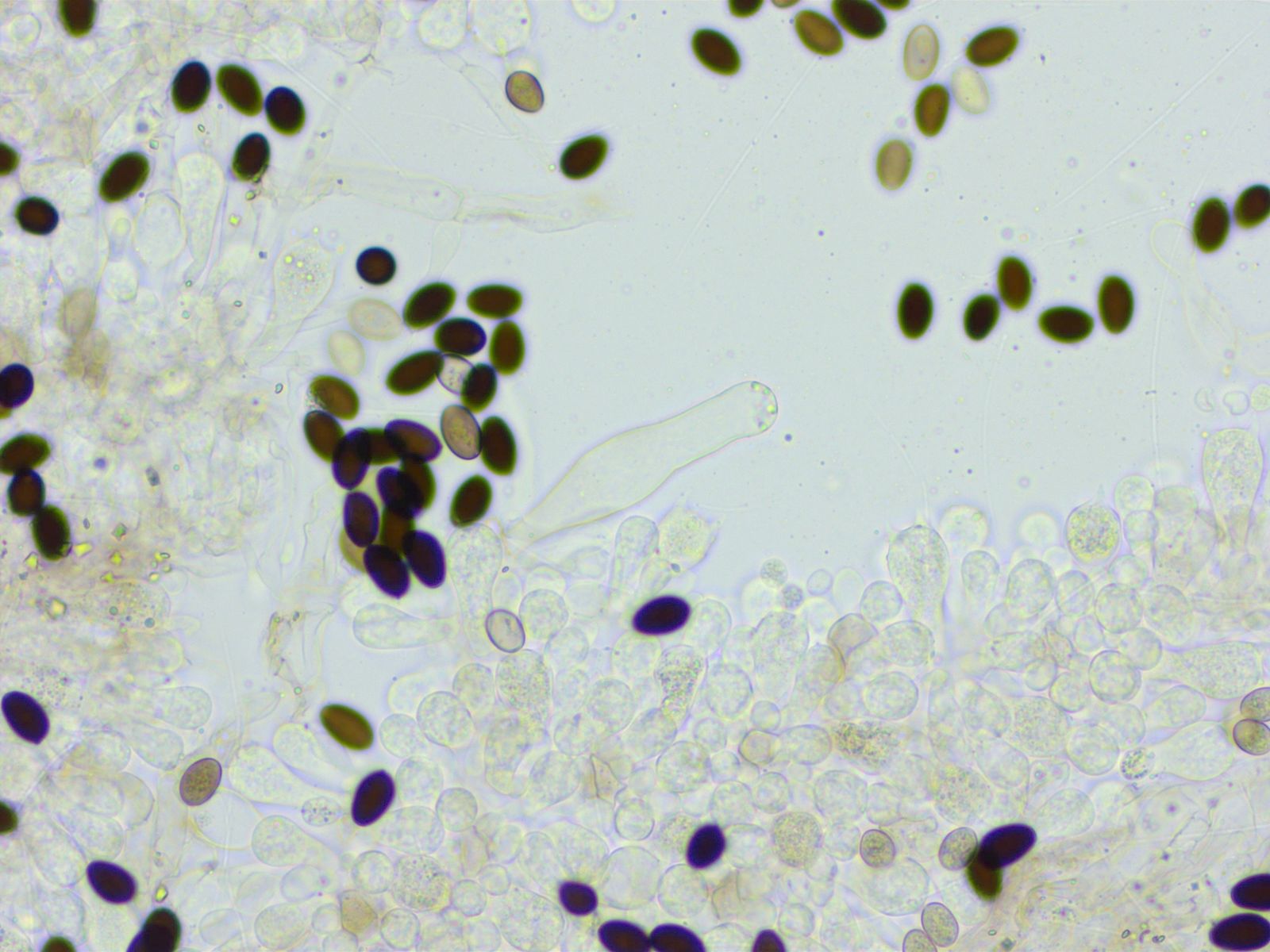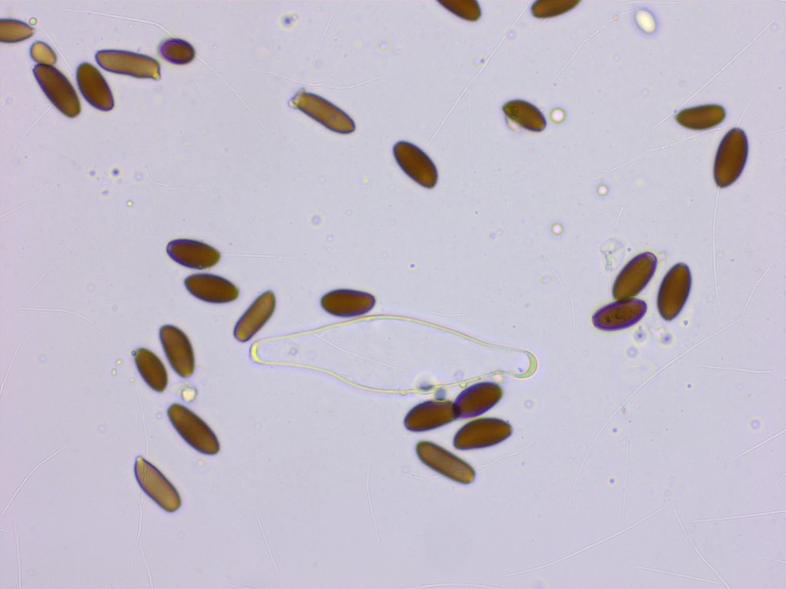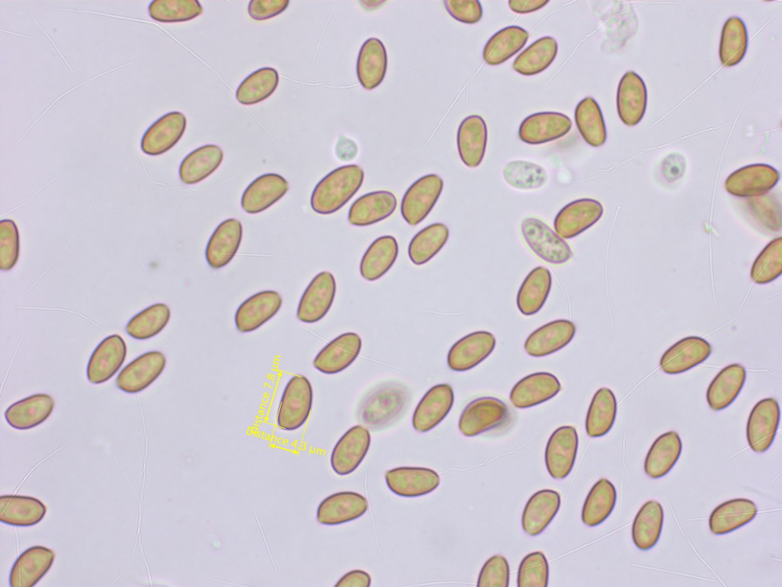 Diese Art zeichnet sich durch sehr schlanke, zylindrische Sporen aus.