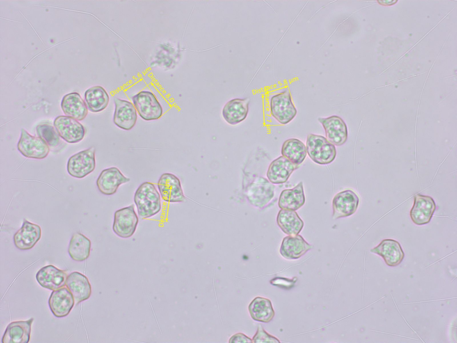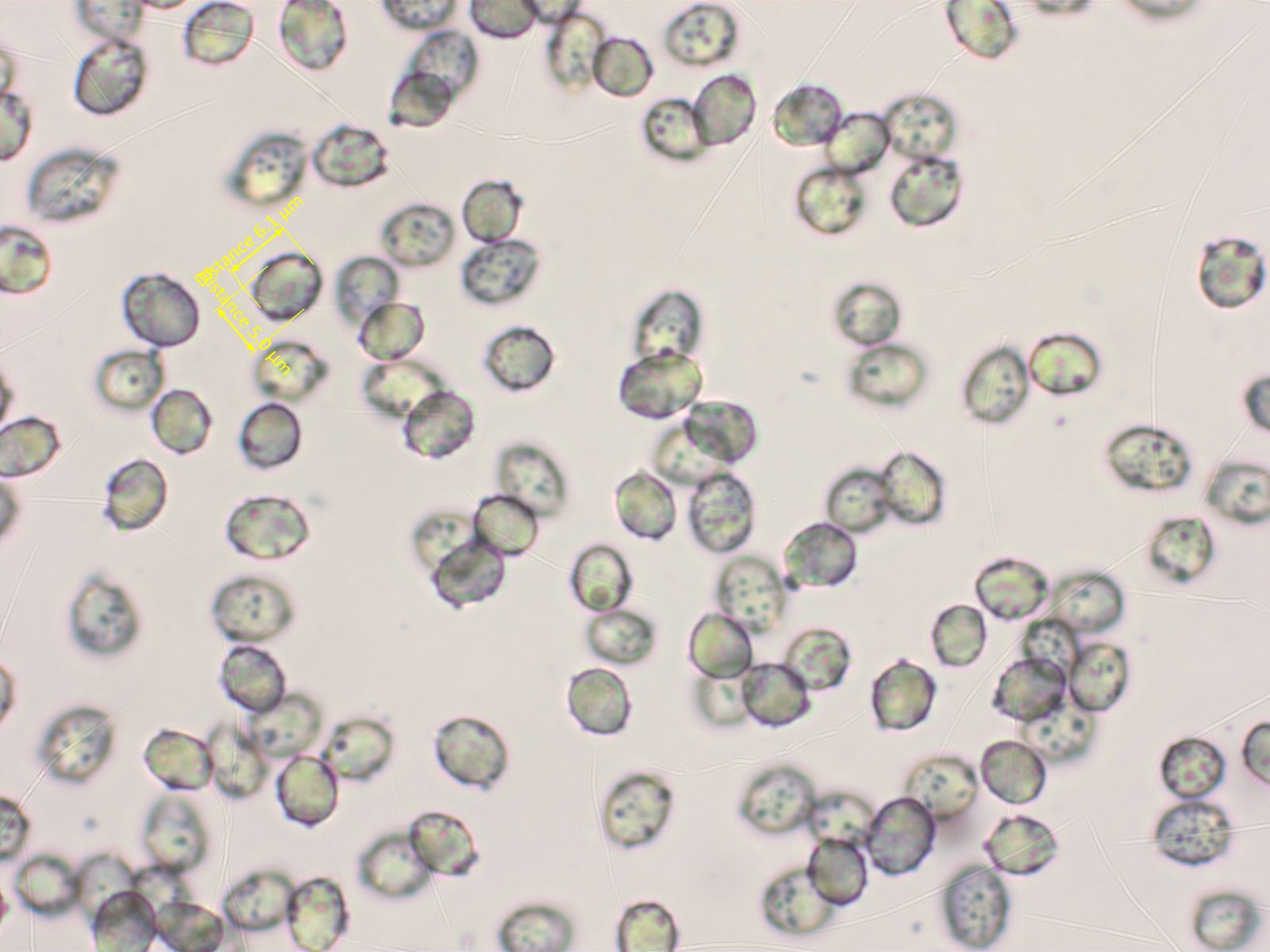Ich bin noch nicht dazu gekommen, die Sporen richtig zu messen.