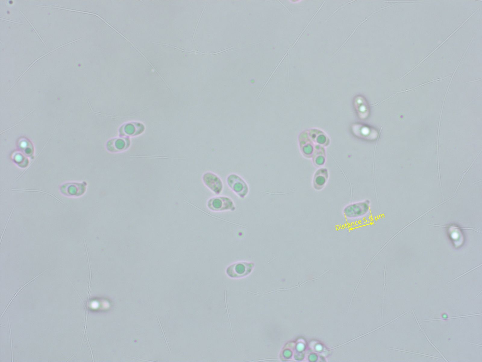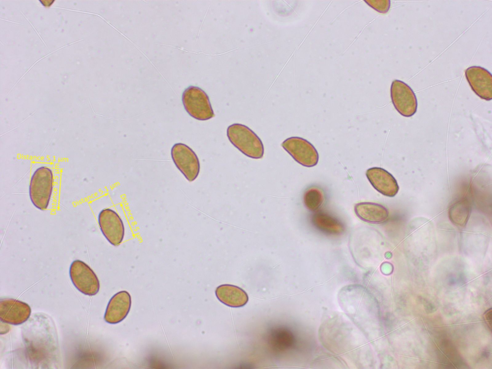 Sporen klein für die Gattung, keine Zystiden, am Stiel nur keulige Elemente.