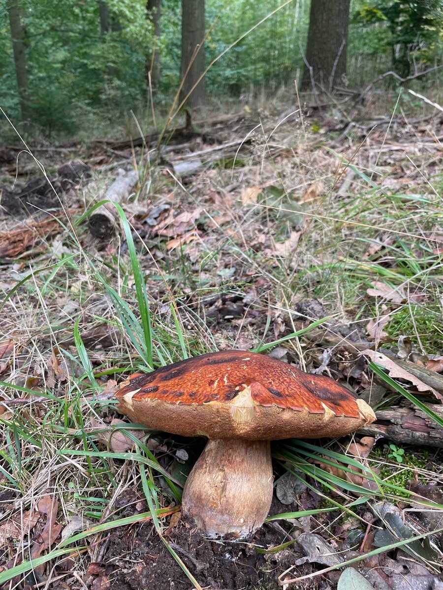 ein Rothütiger Sommerbronzesteinpilz wird wohl eine Wortneuschöpfung (Neologismus) sein, die ebenso elegant wie verzweifelt auszudrücken versucht, dass der Schöpfer oder die Schöpferin sich nicht zwischen den benennenden inkludierten Steinpilzarten bei seinem/ihrem Fund entscheiden kann. Dass der rote Hut als herausragendes Kennzeichen dieses Pilzfundes betont sein soll, könnte sich dem/der Konsumierenden dieses mit Bedacht gewählten Titels als Vermutung in nahezu perfider Dringlichkeit anbieten. Gleichzeitig verbirgt sich in diesem Wortungetüm die dezente, aber nichtsdestotrotz inständige Aufforderung des Verfassers oder der Verfasserin an uns Lesende, also auch an dich, lieber Jörg, ihn oder sie mit unserer Meinung, unserer vielleicht vorhandenen Expertise oder möglicherweise auch nur unserer reinen Spekulation zu unterstützen, damit sich dieser Neologismus mit seiner gesamten Ambivalenz auf befriedigende Weise in eine Eindeutigkeit auflösen kann.