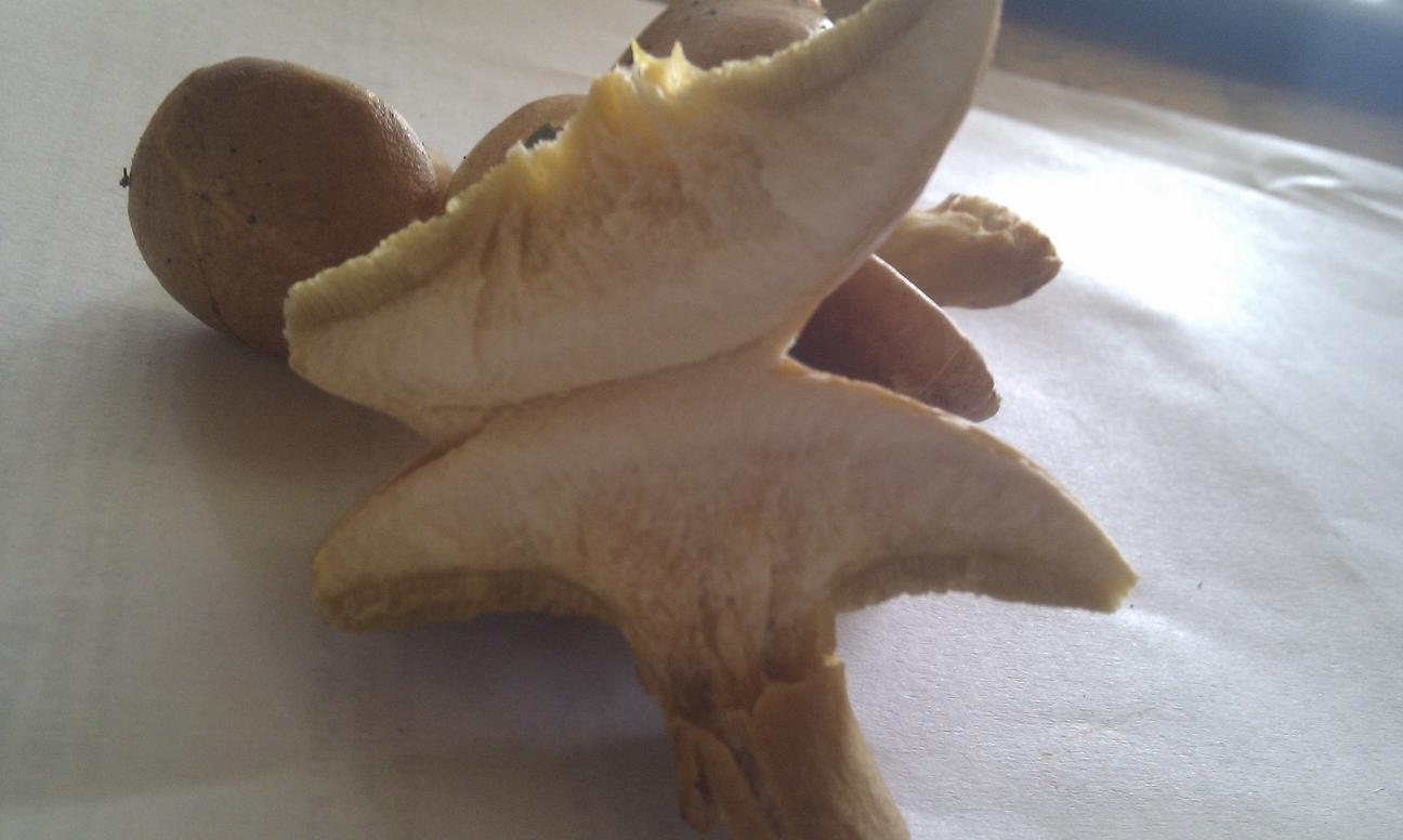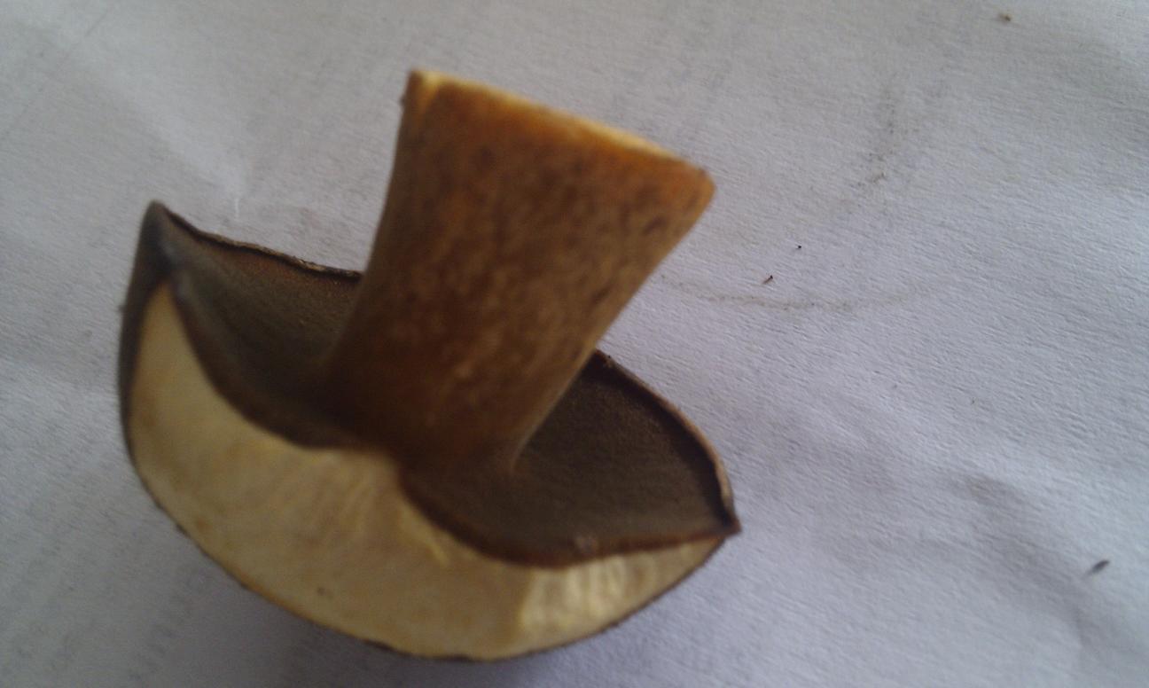 Die Huthaut müßte klebrig sein, und man kann sie leicht abziehen.