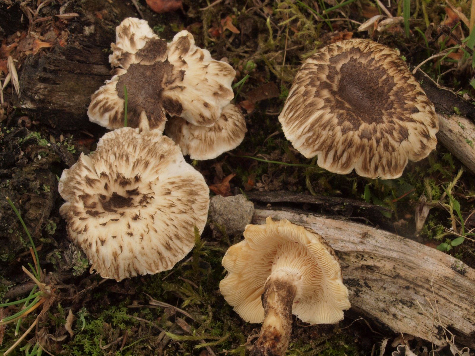 Die folgende Gruppe war in erster Linie wegen des Standortes in Kiefernadelstreu interessant. Makroskopische Merkmale wie Gilben am Stiel und an Lamellenschneiden, etwas scharfer Geschmack und fehlender dotterfarbener Reflex in den Lamellen ließen den richtigen Verdacht aufkommen. Auf gezielte Suche zeigte sich eine einzelne Birke. Ohne Birke wäre ich wahrscheinlich an der Bestimmung verzweifelt