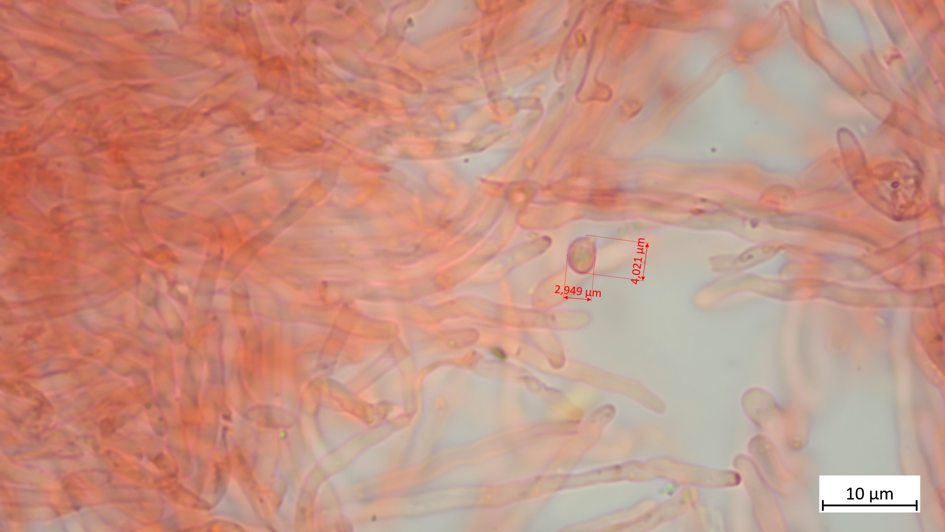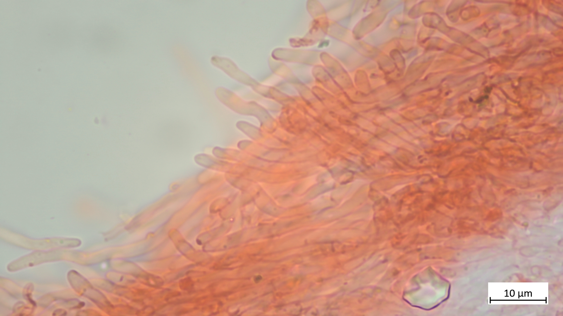KOH- und Eisen-III-Chloridreaktion aus Mangel an Fruchtkörpermasse nicht untersucht.