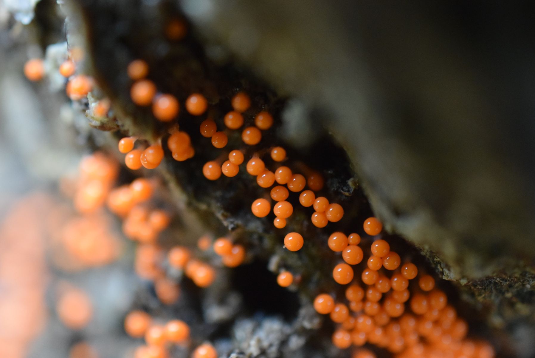 Ich finde, dass diese Tremella mesenterica etwas seltsam aussieht. Gefunden an der Wurzel eines Baumes