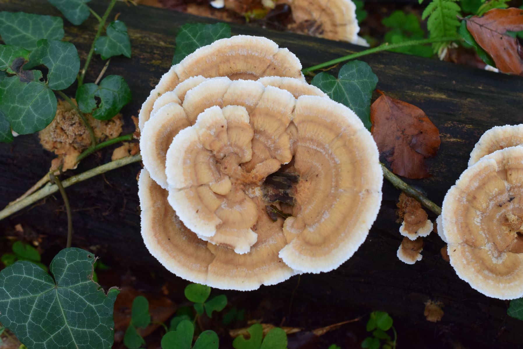 An demselben Buchenstamm, der ziemlich lang ist, habe ich am anderen Ende des Stammes auch neue frische Exemplare des Pilzes Trametopsis cervina gefunden.