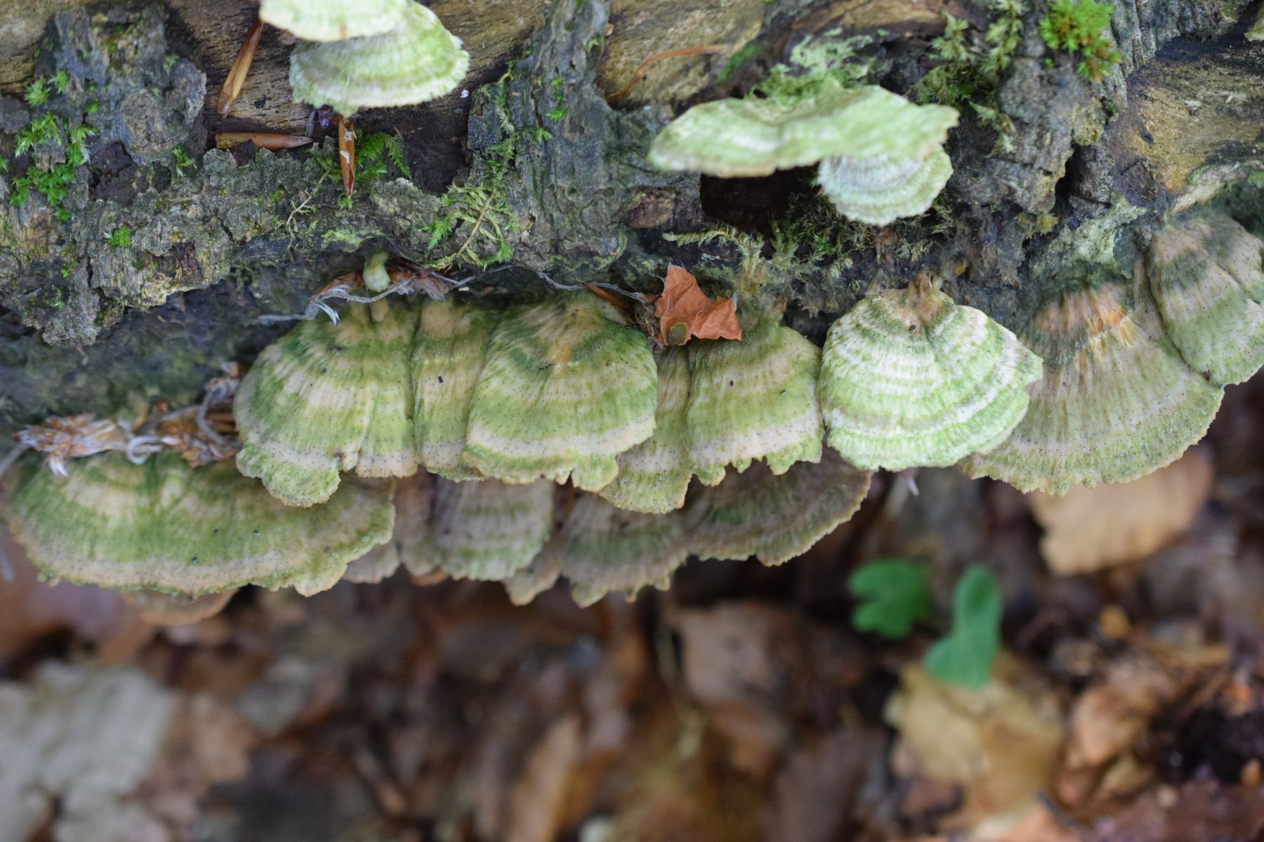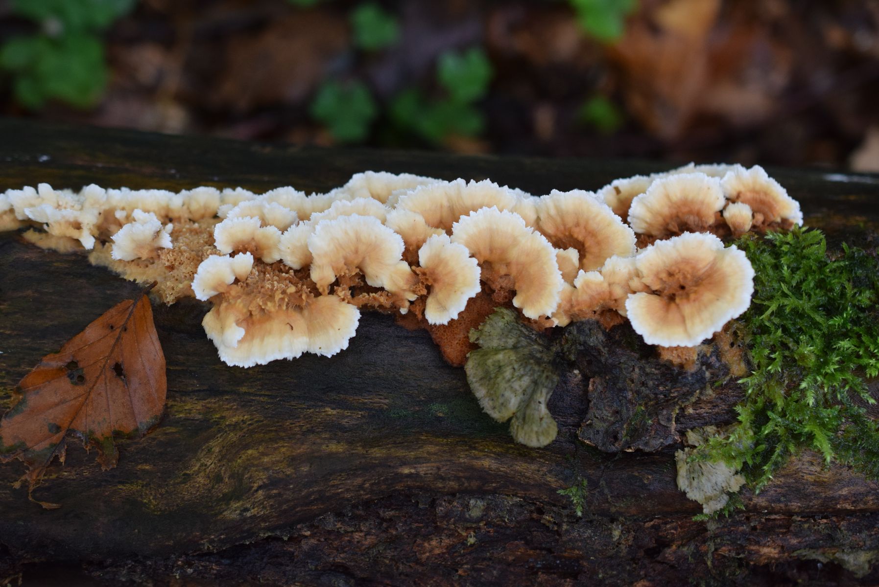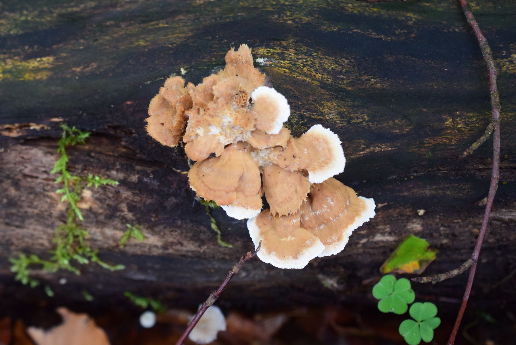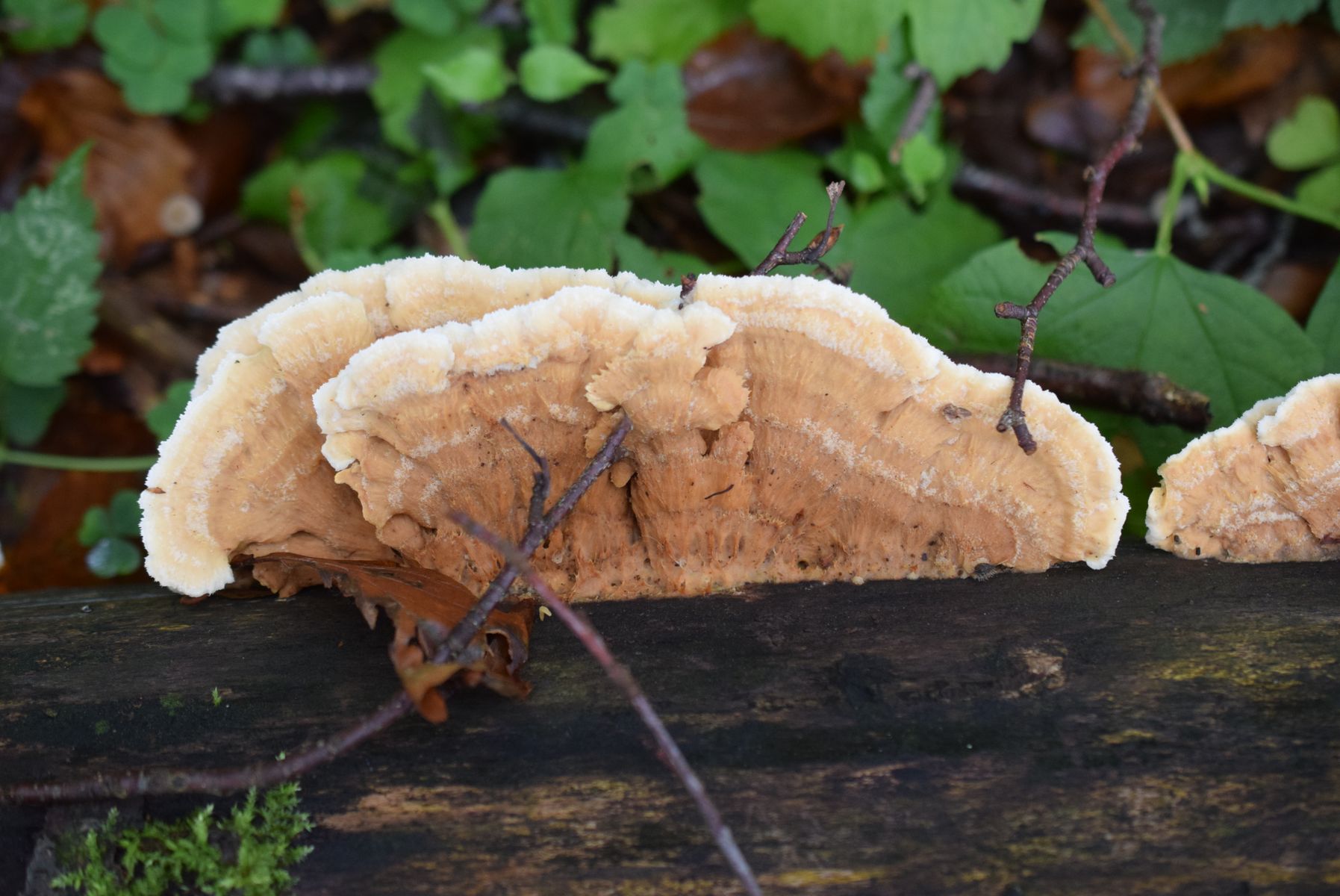 Ich habe diesen Pilz an einem am Boden liegenden Buchenstamm gefunden