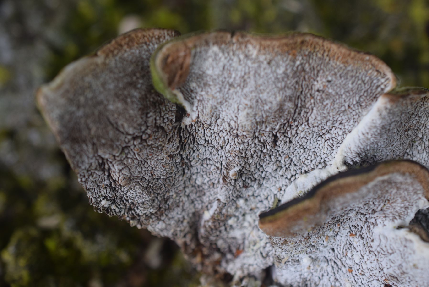 Cerena unicolor Hymenophor , Fruchtkörper in verschiedene Stadium