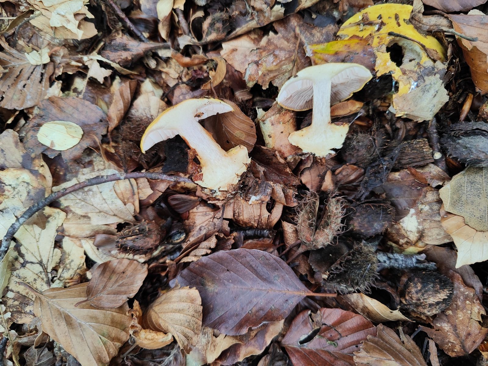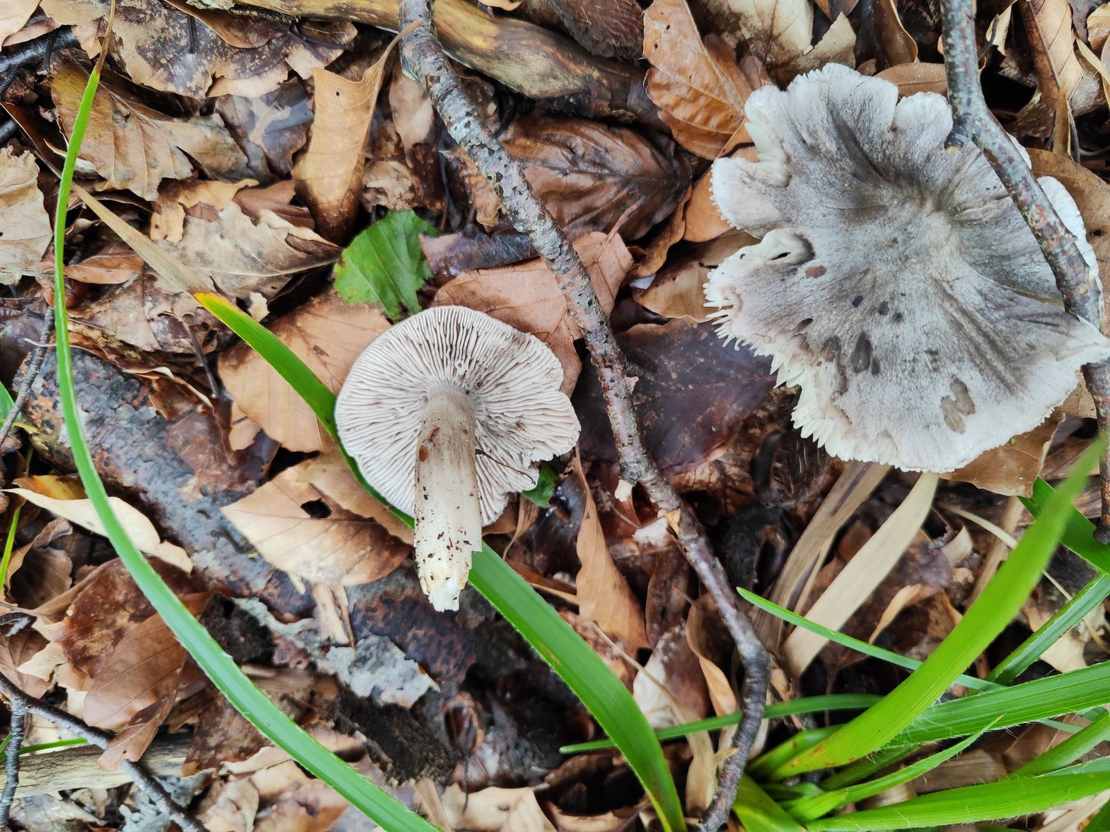 5. Völliger Habitatwechsel in den Kalkbuchenwald, eigentlich Südhanglage und recht trocken, aufgrund eimerweise Niederschlag in den letzten Wochen aber doch sehr feucht. Dieser Ritterling sah ein wenig wie ein Erdritterling aus, roch aber nicht nach Mehl und schmeckte leicht schärflich. Tr. scioides?