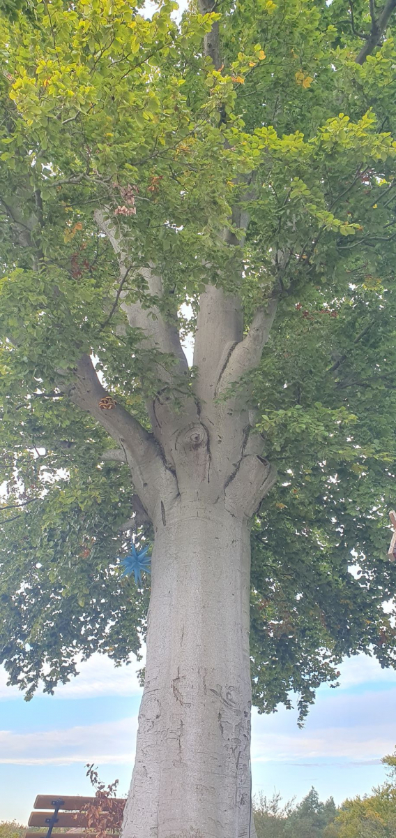 Unserer großen Buche (ca. 200 Jahre, 1,1m Stammdurchmesser) wachsen in ca. 6m Höhe Pilze aus einem großen Ast.