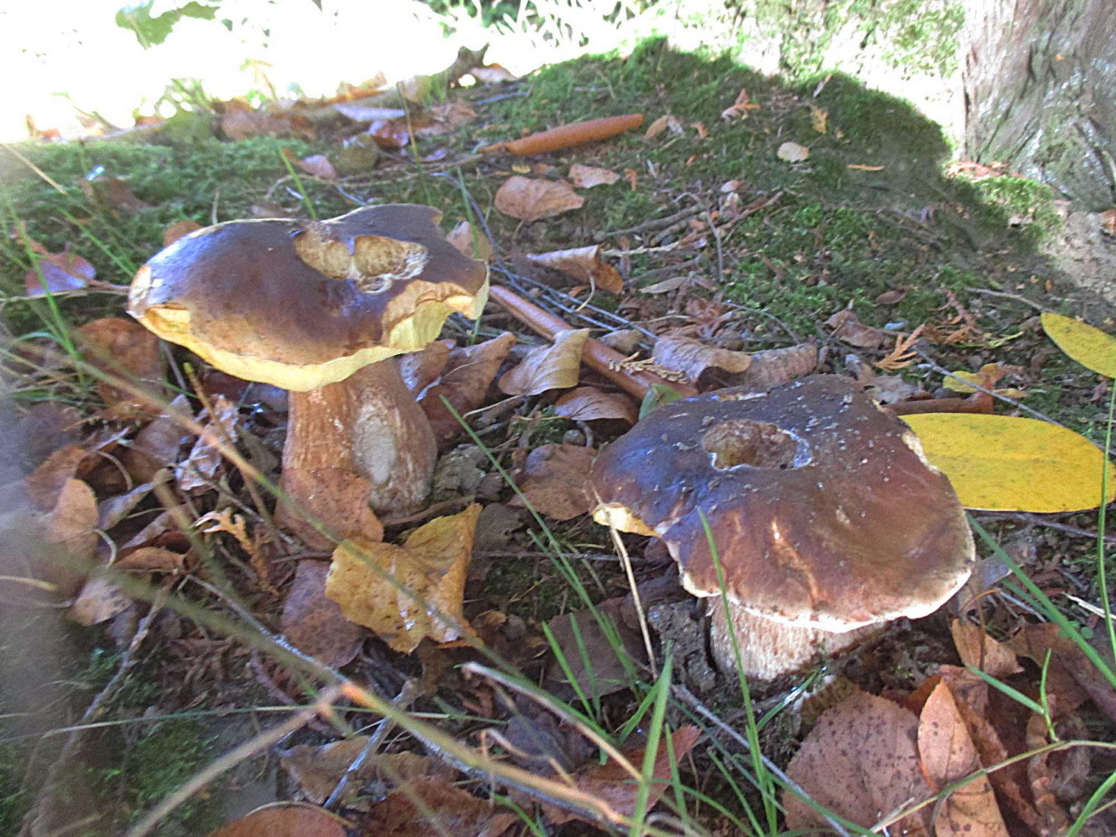 Boletus reticulatus, der Sommer-Steinpilz hier gemeinsam mit ein paar Pantherpilzen