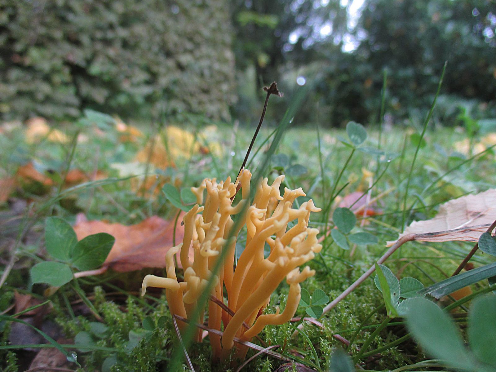 Clavulinopsis helvola, die Goldgelbe Wiesenkeule