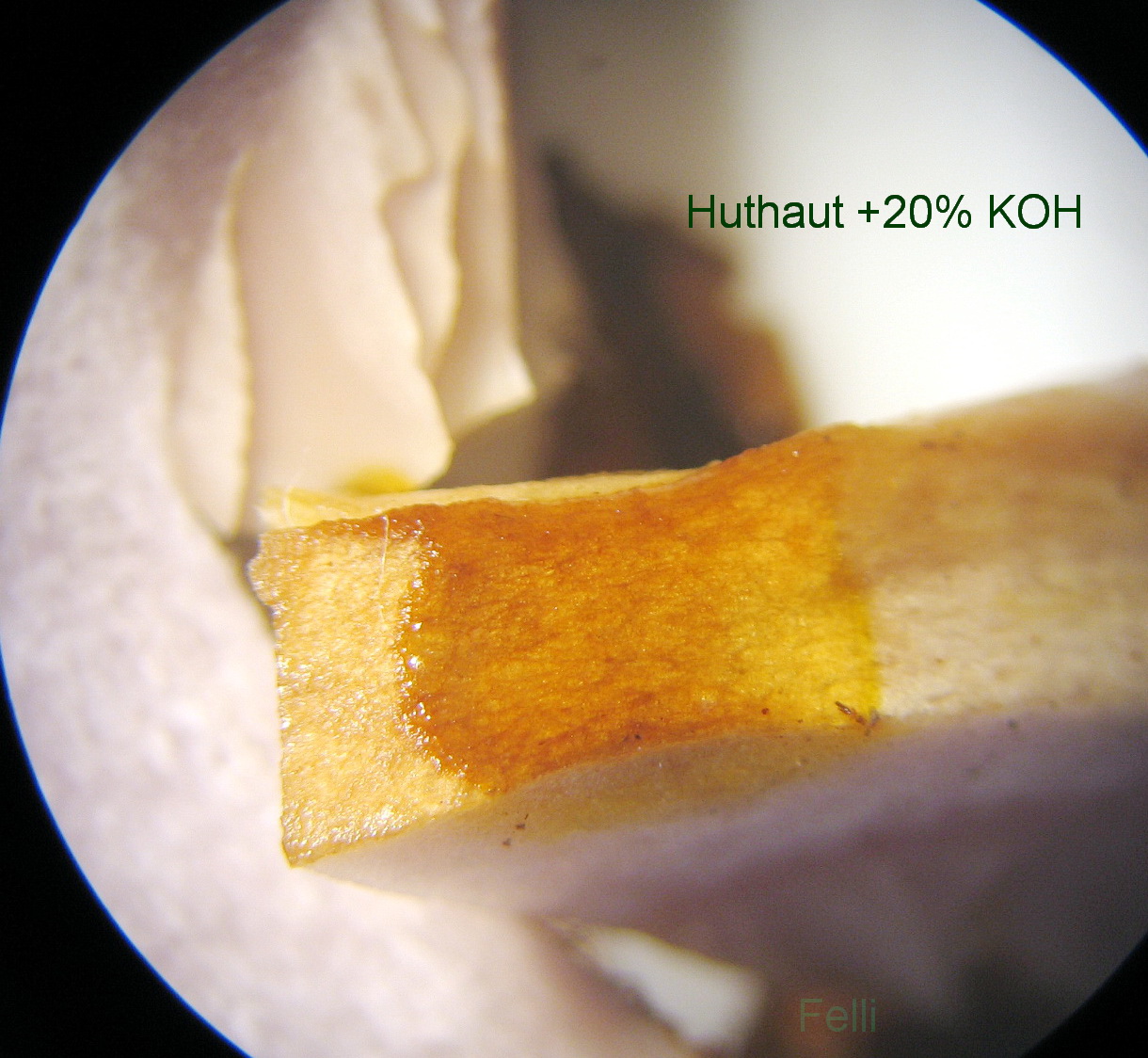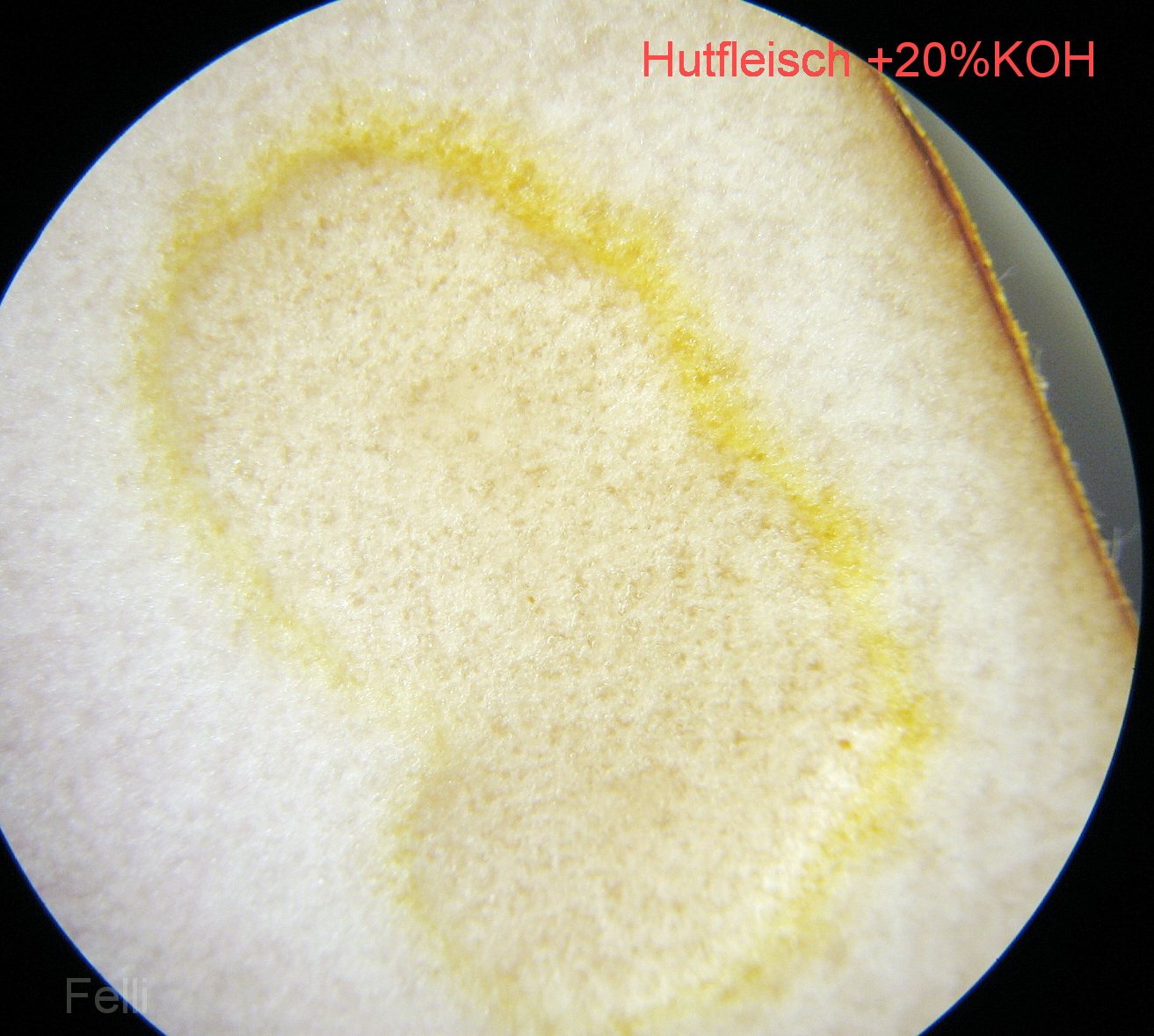 KOH 20% auf Hutfleisch +/- negativ aber mit deutlich gelber Randzone,