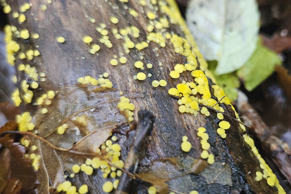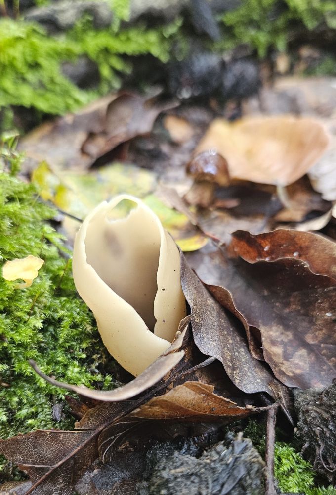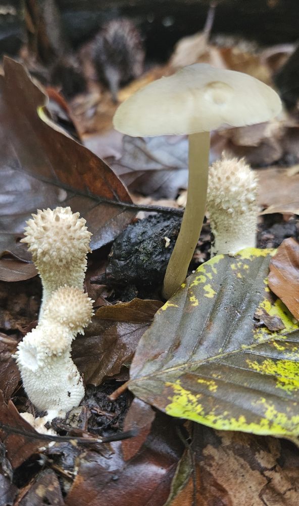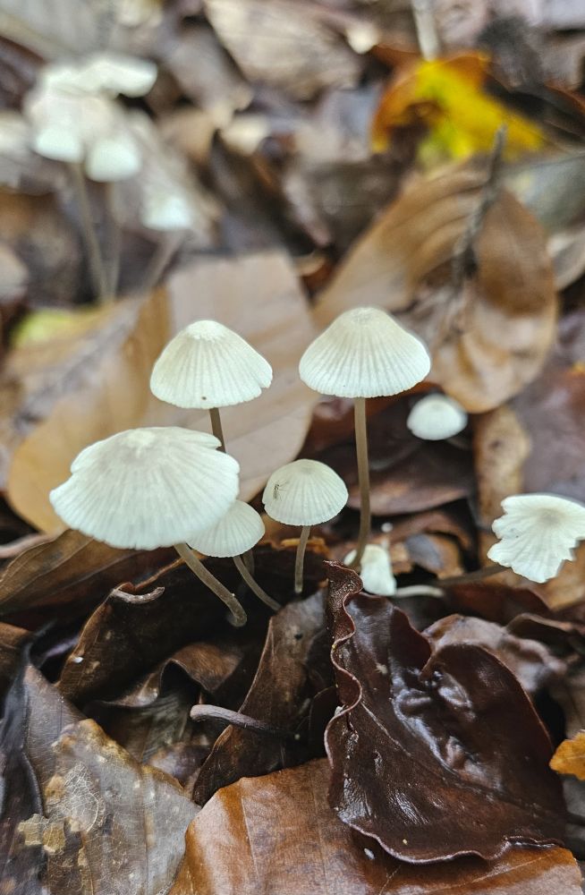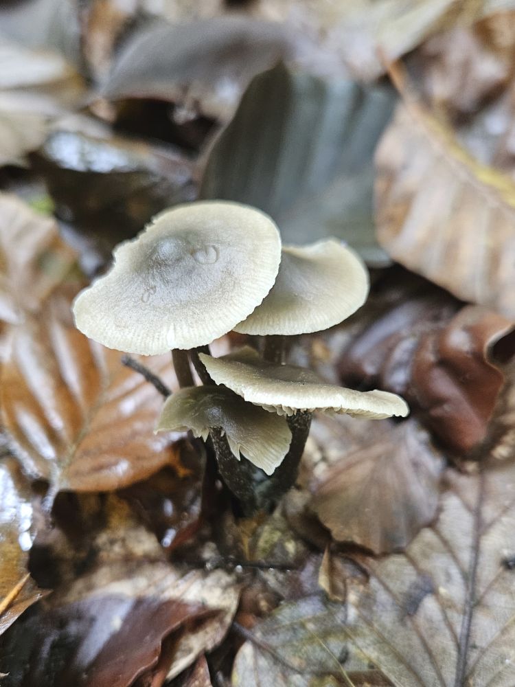 • Keine zwei Kilometer von meiner Arbeitsstelle entfernt gibt es einen wundervollen Buchen-dominierten Laubwald auf Kalk. Wenn der mal richtig durchfeuchtet ist (was allerdings aufgrund des dichten Blätterdachs dauern kann), dann explodiert die Pilzwelt förmlich und man stolpert von einem spannenden Fund zum nächsten. Das macht richtig Freude, wenngleich auch ein weinendes Auge dabei war, weil ich den Funden wegen Zeitmangels außer einer kurzen fotografischen Dokumentation leider nicht die nötige Aufmerksamkeit und Nachbearbeitung schenken konnte. Nach meinem Umzug habe ich zur Zeit keinen Zugriff auf meine Literatur oder Mikroskop, vor allem fehlt aber die Zeit beides angemessen zu nutzen. Viele Funde müssen daher unbestimmt bleiben, dennoch sollten einige von ihnen sicher per Bild ansprechbar oder zumindest einzugrenzen sein.