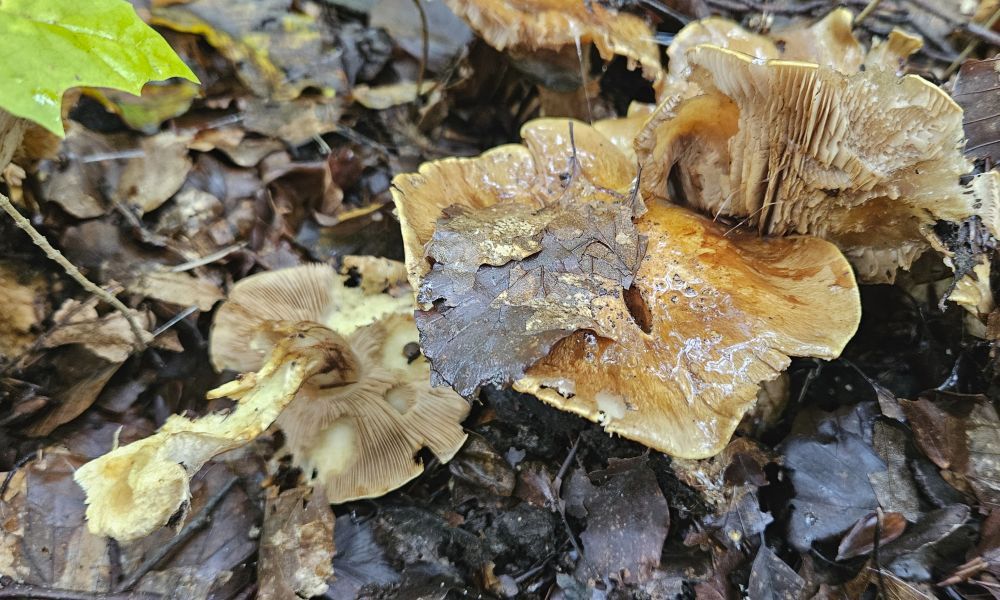 17. Momentan stehen tausende Fruchtkörper von M. flavescens im Laub. Ein leichter Gelbschein in den Lamellen und deutlicher Rettichgeruch wären relevant.