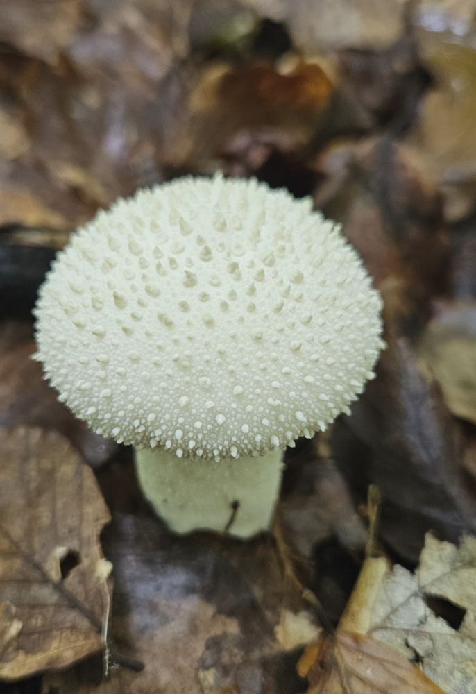 34. Das werden mal vermutlich Flaschenstäublinge. Da sie noch klein sind, suchen sie unter ein Pilzhut Schutz.