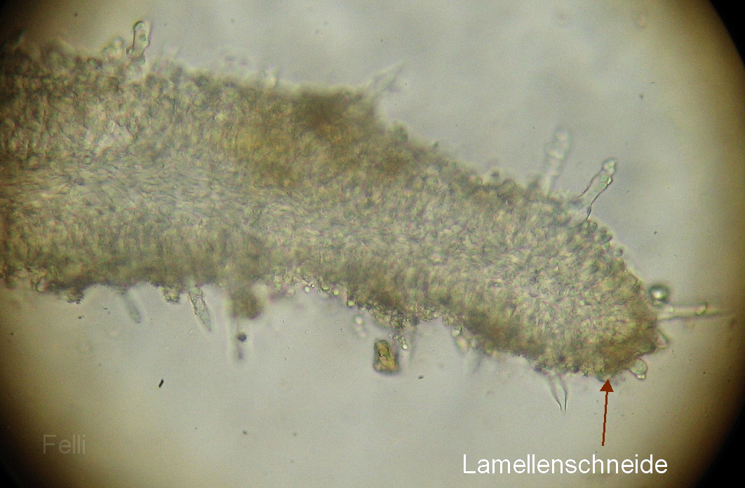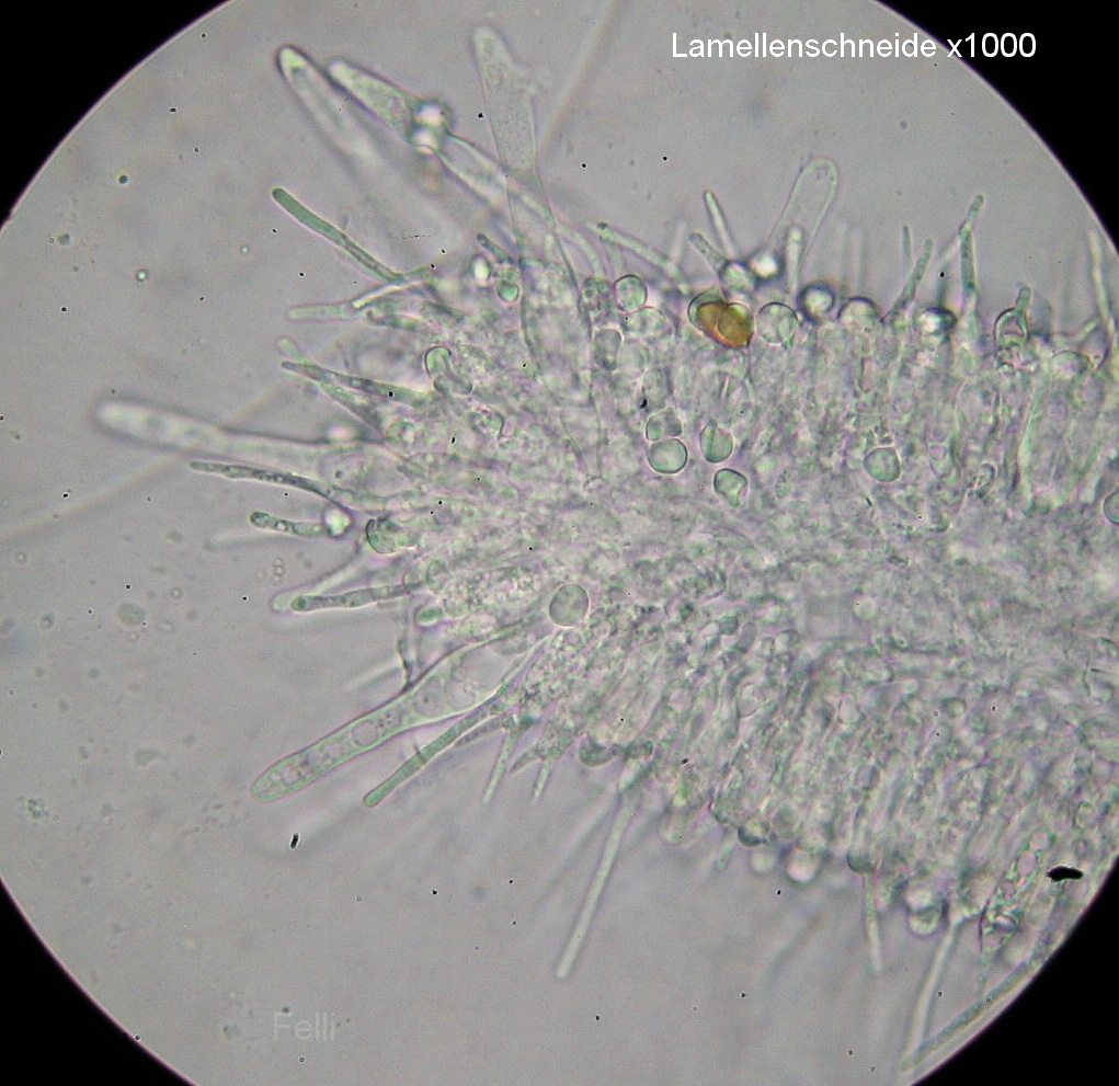 Da mein Pilzchen gerademal 2 Std nach dem "Ernten" unterm Mikro lag, muss es wohl am Wetter gelegen haben, dass die Dinger so lang wurden,