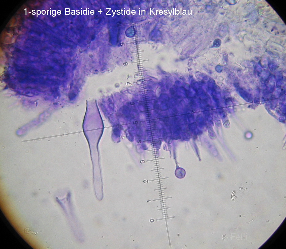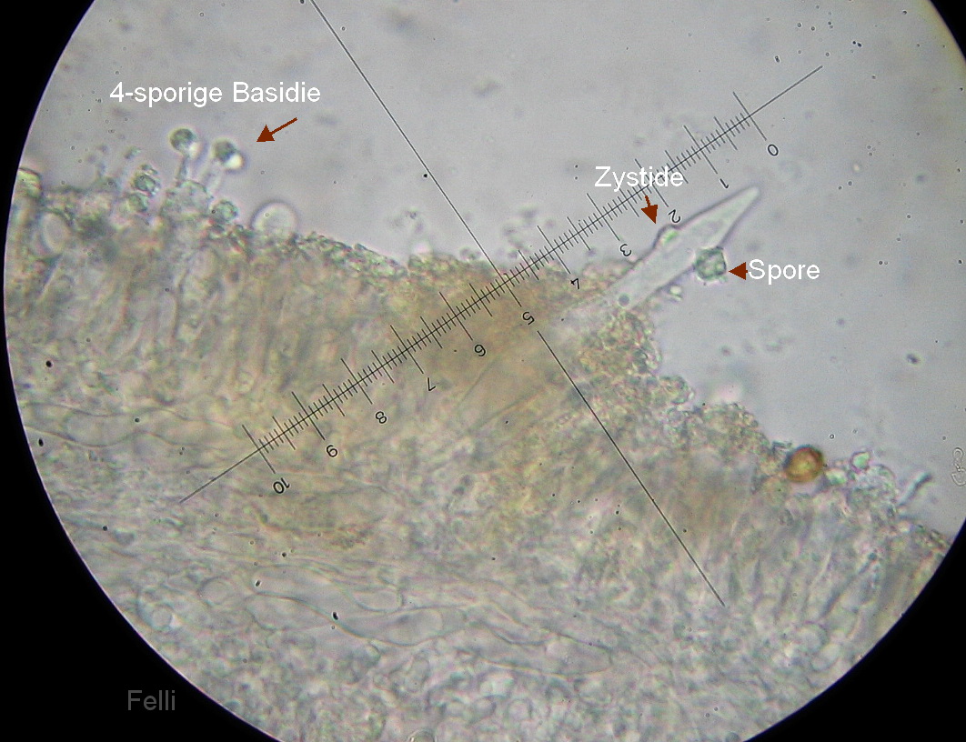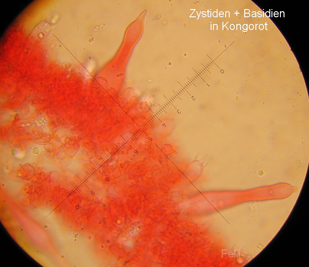 Deutlich die 4-sporigen Basidien+ mucronate Zystiden