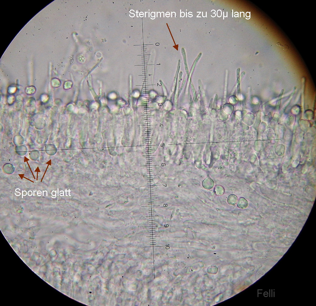 Hier bleibt eigentlich auf Grund der 2-sporigen Basidien und der glatten 5,5-6,5 µ großen Sporen nur