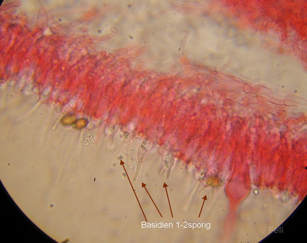Das liegt vermutlich daran dass bei meinen Fruchtkörpern 4-sporige Basidien zu finden waren und bei dir nur 2-sporige.