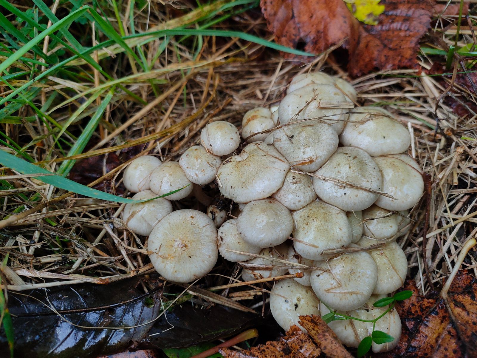 2. Pholiota: Ein am Wegesrand im Graswachsender bücheliger FK hat mein Interesse geweckt. Die Hut waren sehr schleimig und die Unterseite zeigt zu meiner Verwunderung