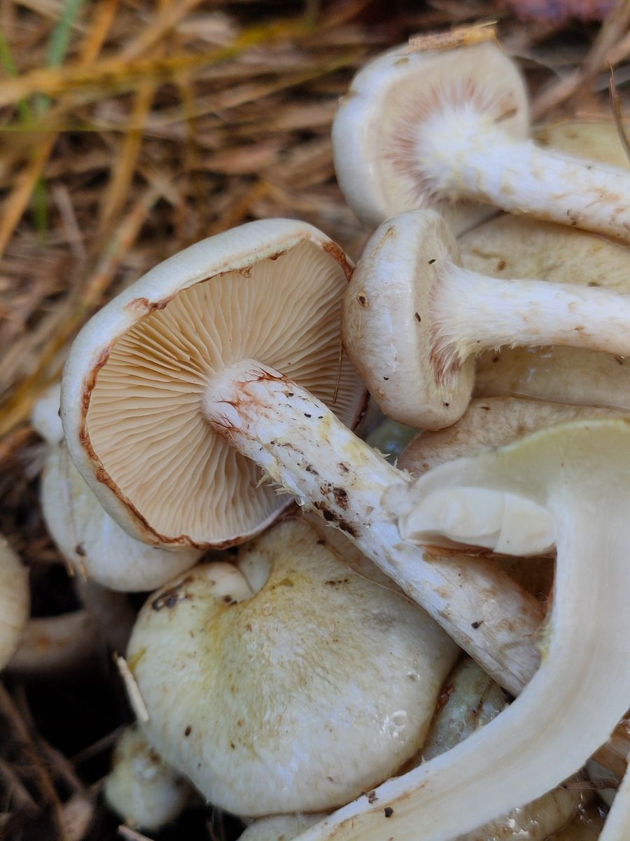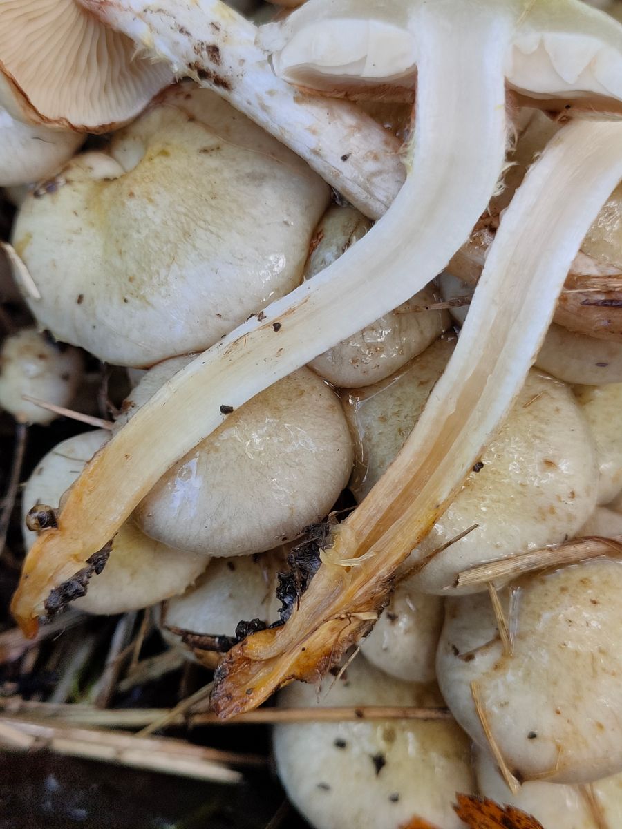 Pholiota ungewöhnlich schleimmig. Ein weisser schleimmiger Schüppling kann es aus meiner Sicht nur sein. Vielleicht Pholiota lenta?