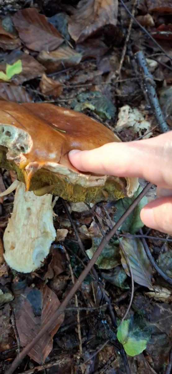 2) Den Steinpilz, den ich letztendlich mitgenommen habe, habe ich gar nicht im Bild, der sah auch unspektakulär aus, aber seinen Urgroßvater habe ich mal festgehalten (gestern las ich hier irgendwo "Opa vom Boletus", was ich wirklich lustig fand, und so in meinen Wortschatz aufnehmen will).
