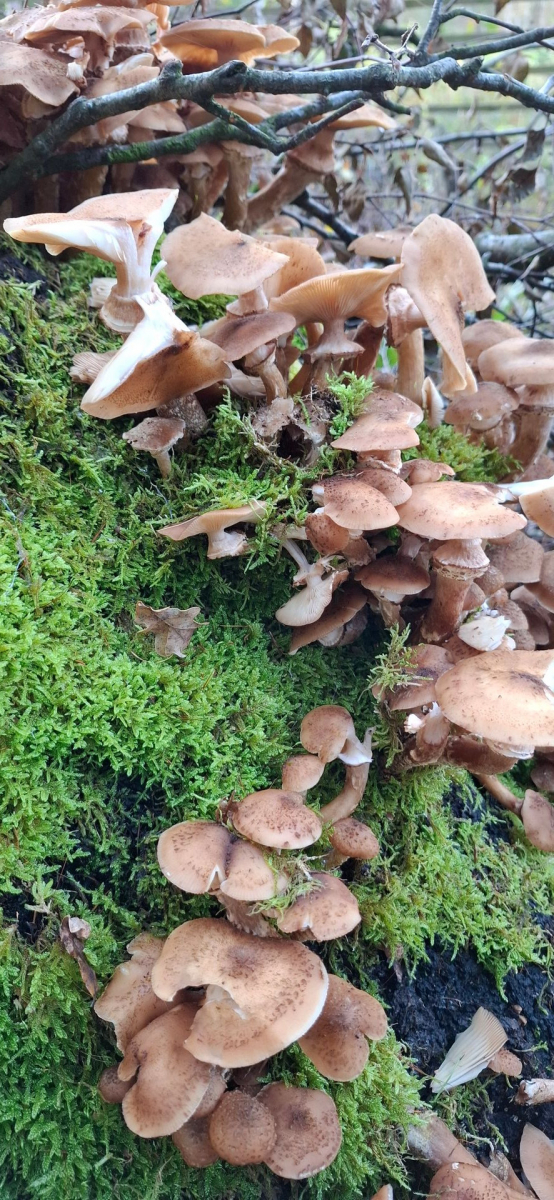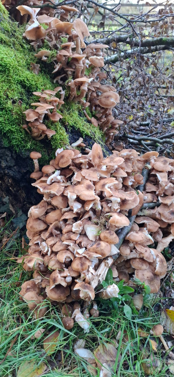 4) Aber eben nicht an jedem, hier glaube ich, ältere Halimasch zu sehen (noch nie geerntet, kenne mich mit ihnen nicht aus).