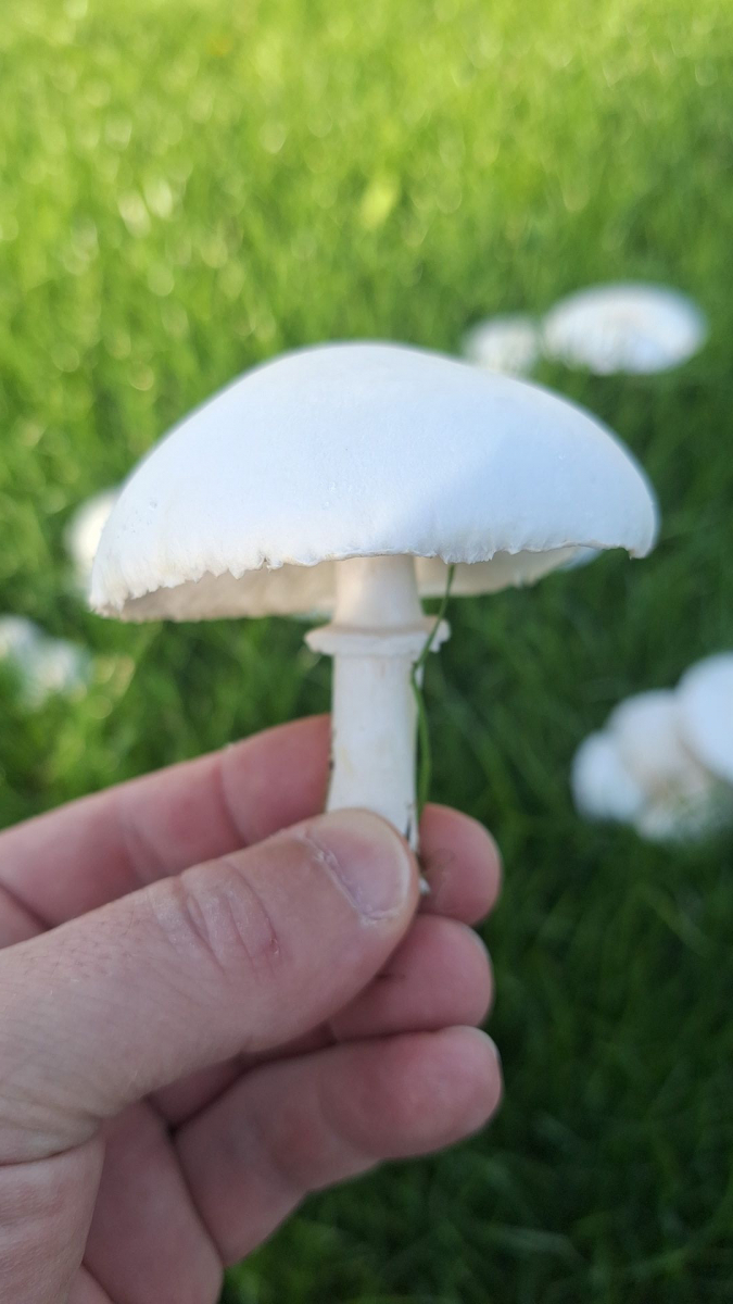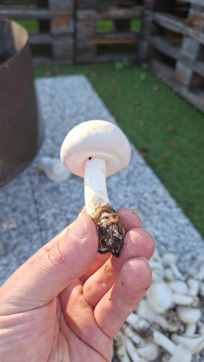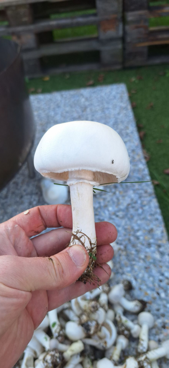 Es gibt hier keine Essfreigabe und Egerlingsschirmlinge können Magen-Darmbeschwerden auslösen.