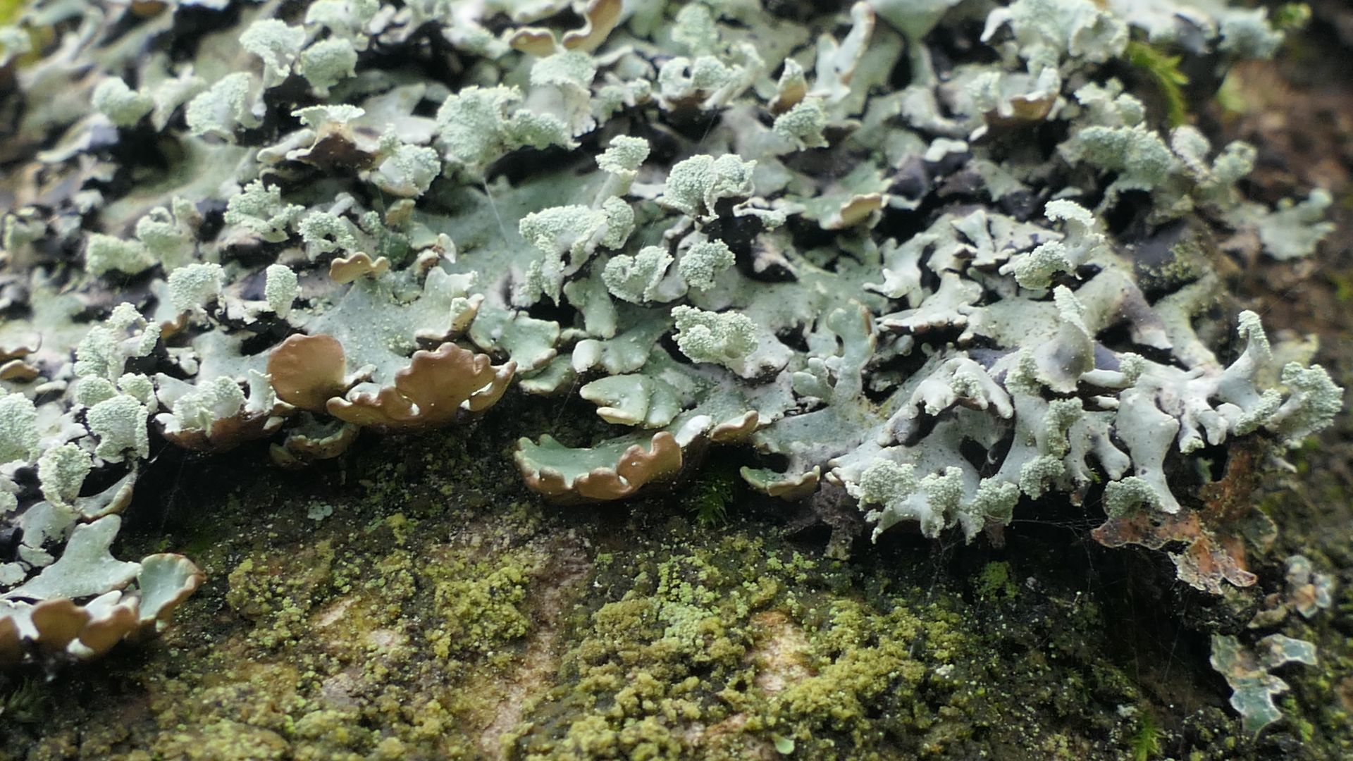 Vielleicht lohnt sich hier ein zweiter Blick zwischen und unter die großen Blattflechten, um kleinere Krustenflechten zu finden...