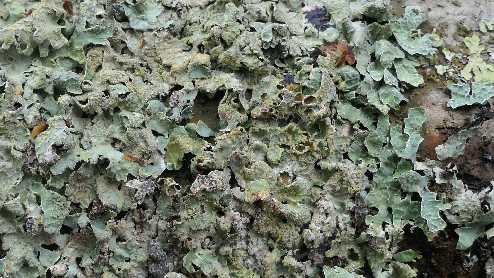 Bild 4 Punctelia jeckeri mit undulierenden Rändern, vielen Borten- und Punktsoralen