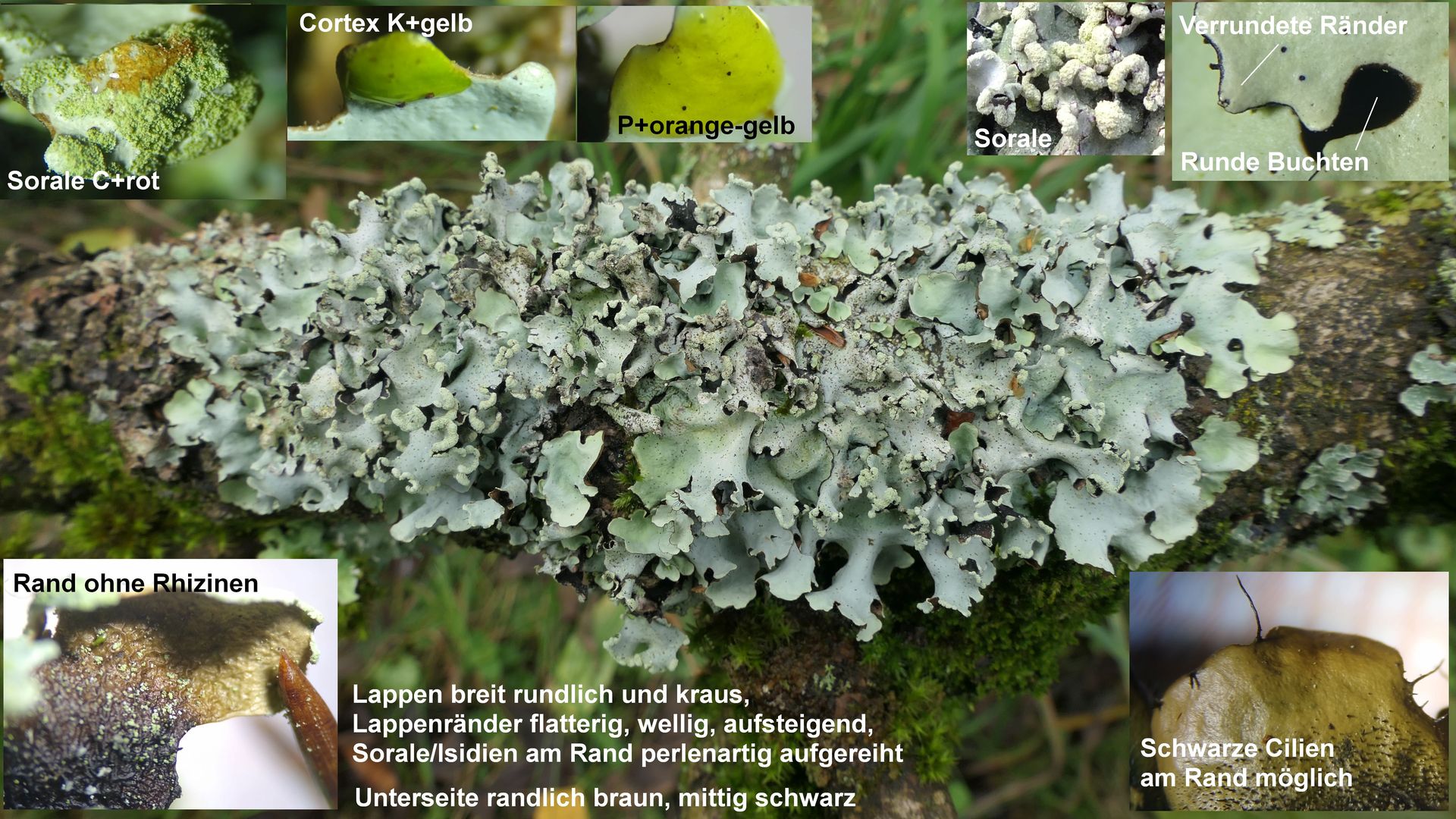 Bild 8 Eine weitere Punctelia jeckeri mit sehr schön ausgeprägten Bortensoralen an den welligen, aufsteigenden Lagerrändern.