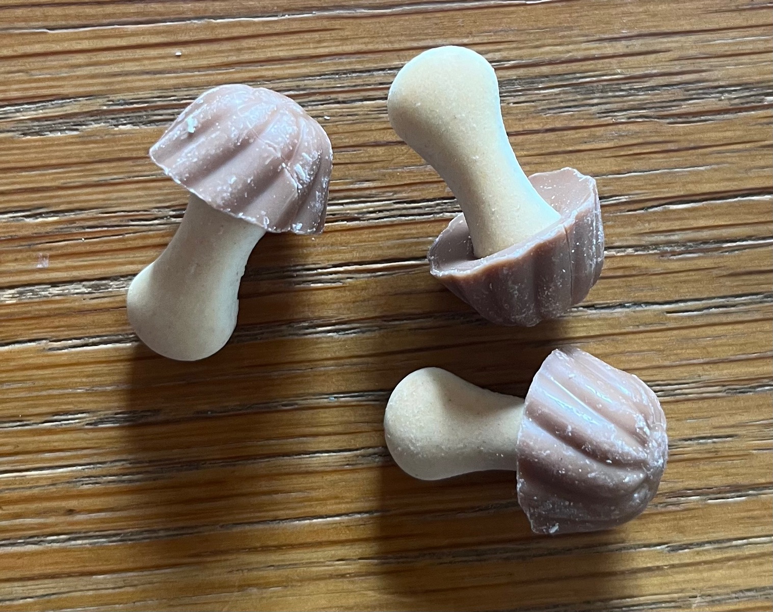 Bitte nicht böse sein, aber was für eine unzureichende Bestimmungsanfrage! Das einzige, was du geliefert hast, ist das Habitat. Kein Schnittbild, wonach die riechen willst du uns auch nicht sagen, die Konsistenz bleibt uns auch verborgen. Wir können nur vermuten, ob die Stiele aus Marzipan, weißer Schokolade oder Kunststoff bestehen. Wie reagieren sie auf heißes Wasser?
