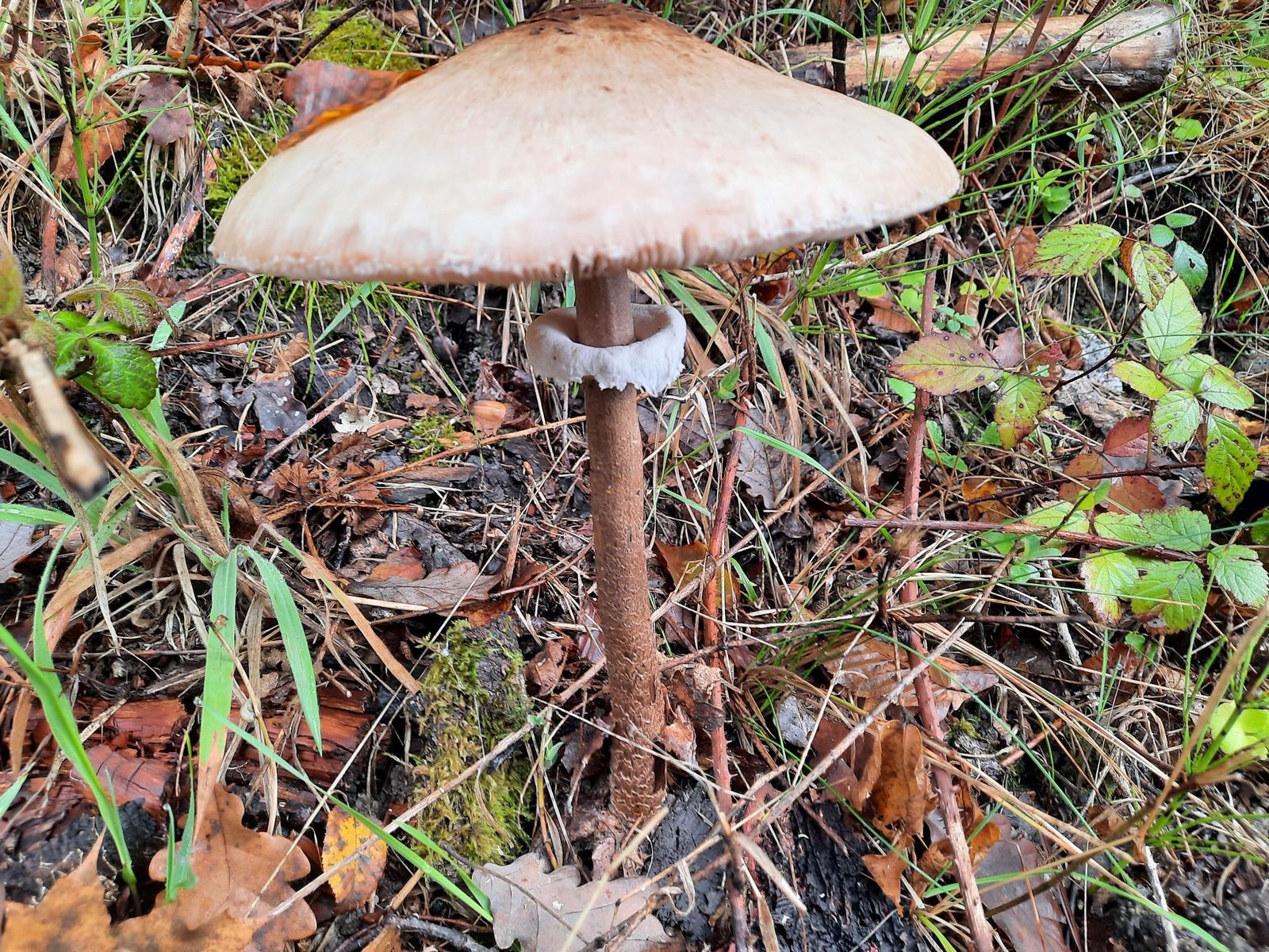 Auffindort: direkt neben einem kleinen Weg unten an einer Böschung, im Umkreis ca. 8-10 gleichartige Pilze, Bild BrauneKappe-5.jpeg zeigt einen vermutlich noch ganz jungen Pilz, bei dem die Kappe noch nicht geöffnet ist.