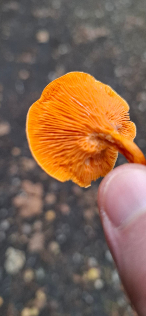 Und der auf Totholz gewachsene super orange Pilz, den ich zu 80% für einen falschen Pfiffi halte. Und ich merke gerade, die Fotos sind etwas dürftig. Liege ich damit richtig?