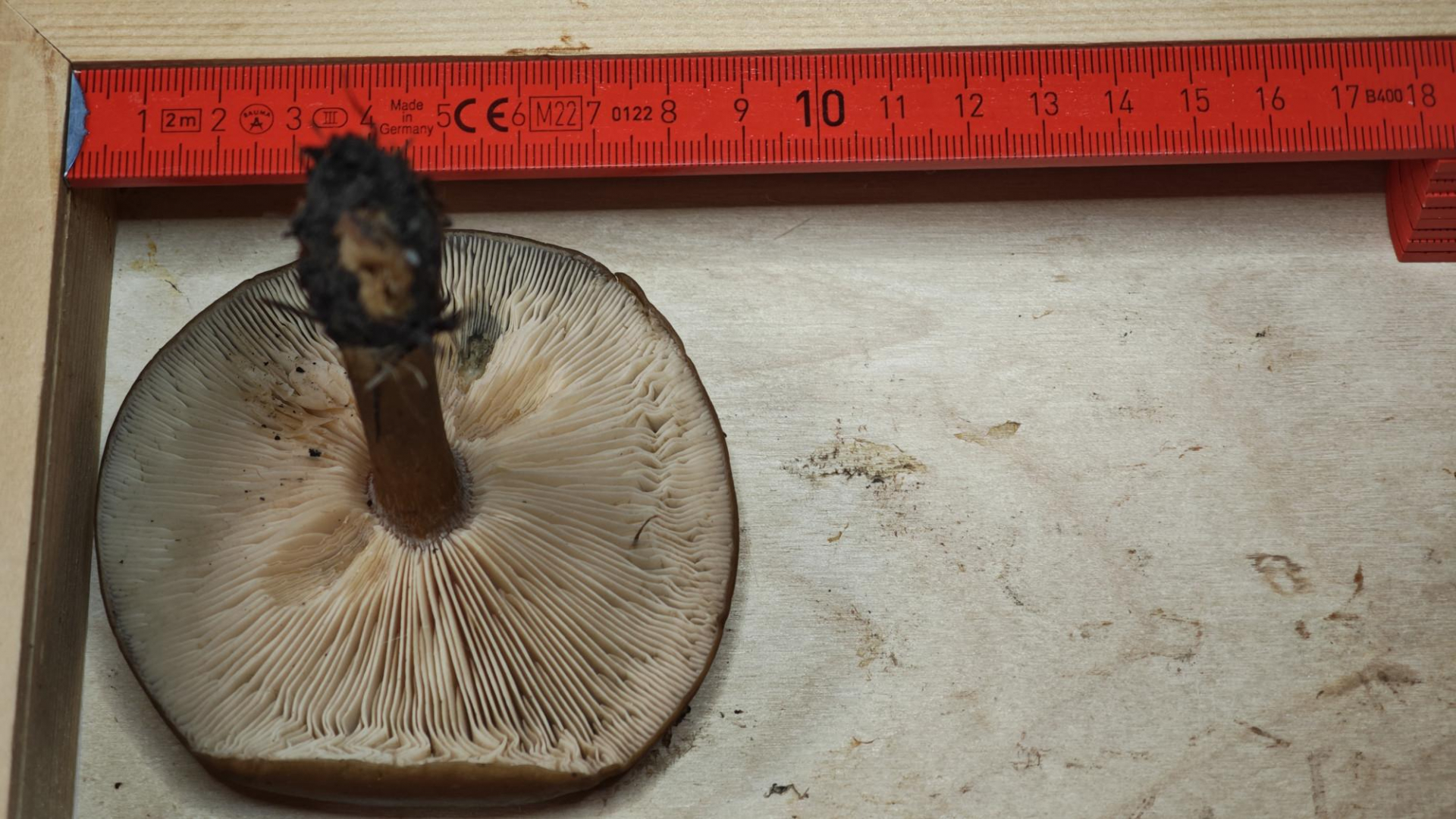 2. Weiter ging es mit einer Melanoleuca - Weichritterling. Ich habe hier alle mikroskopischen Daten gesammelt (Cheilos, Pleuros, Kaulos, Sporen) und durfte sie an Raphael Clavaria senden. Er schaut sich das freundlicherweise mal an und dann kann ich hier evtl. noch die genaue Art nachreichen. Bei Melanoleuca gibt es im Moment ja keine gute Literatur zur Bestimmung und man müsste, wie ich von Raphael weiss, die Papers von Antonin et al. der letzten Jahre studieren. Das lasse ich vorerst mal lieber sein, sonst könntet ihr wohl noch länger auf ein Ergebnis warten.