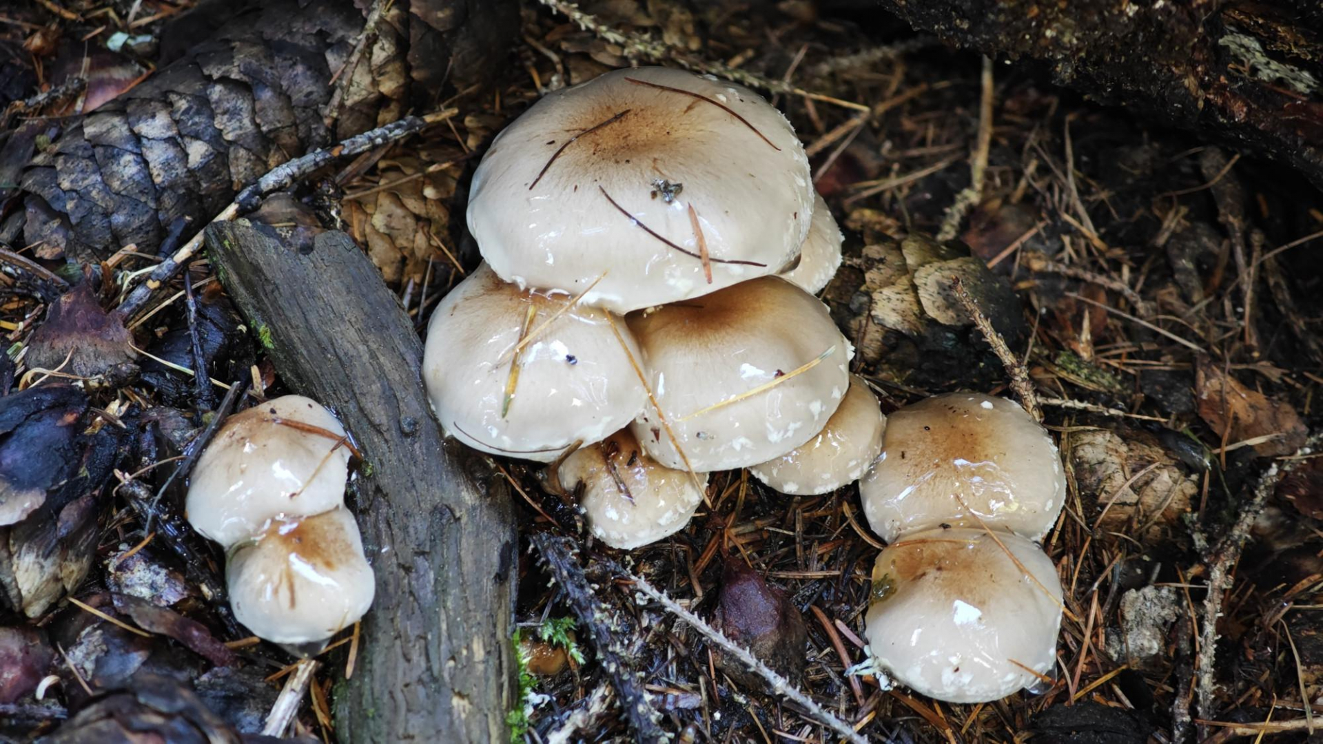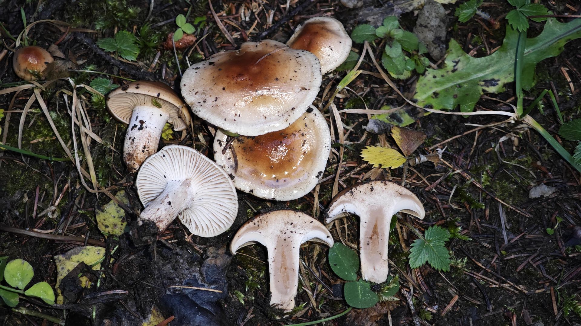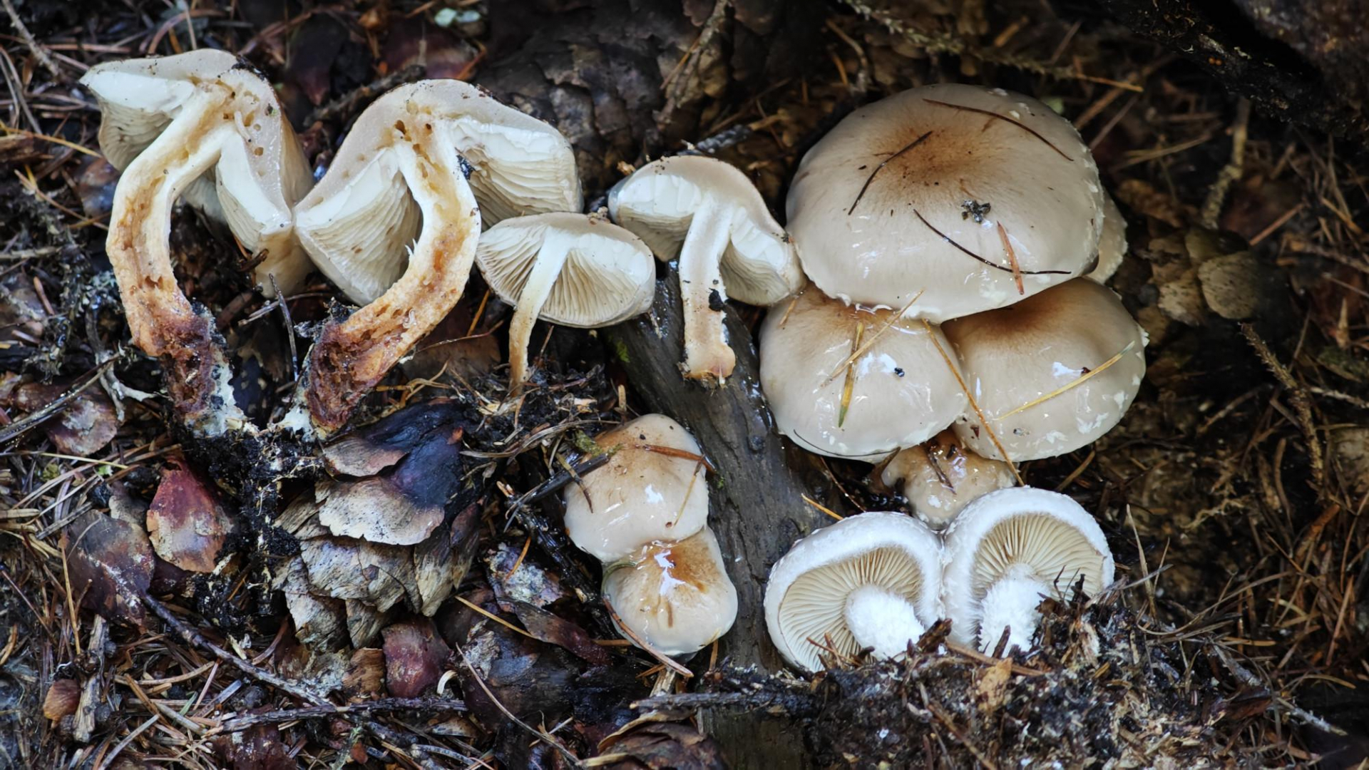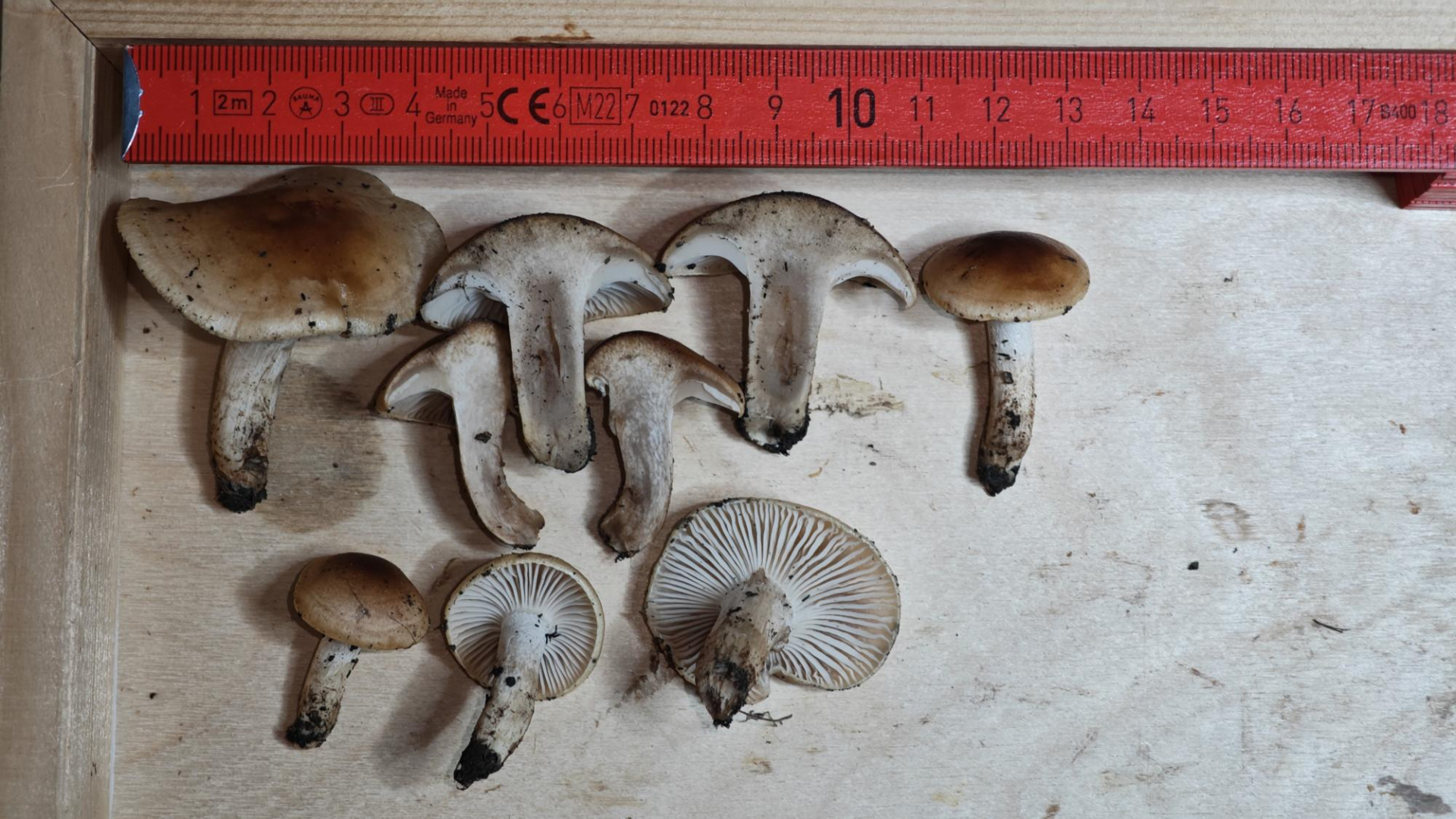 8. Etwa gleich zahlreich, aber für mich zumindest weniger spektakulär war diese Gruppe Tricholoma saponaceum - Seifenritterlinge: