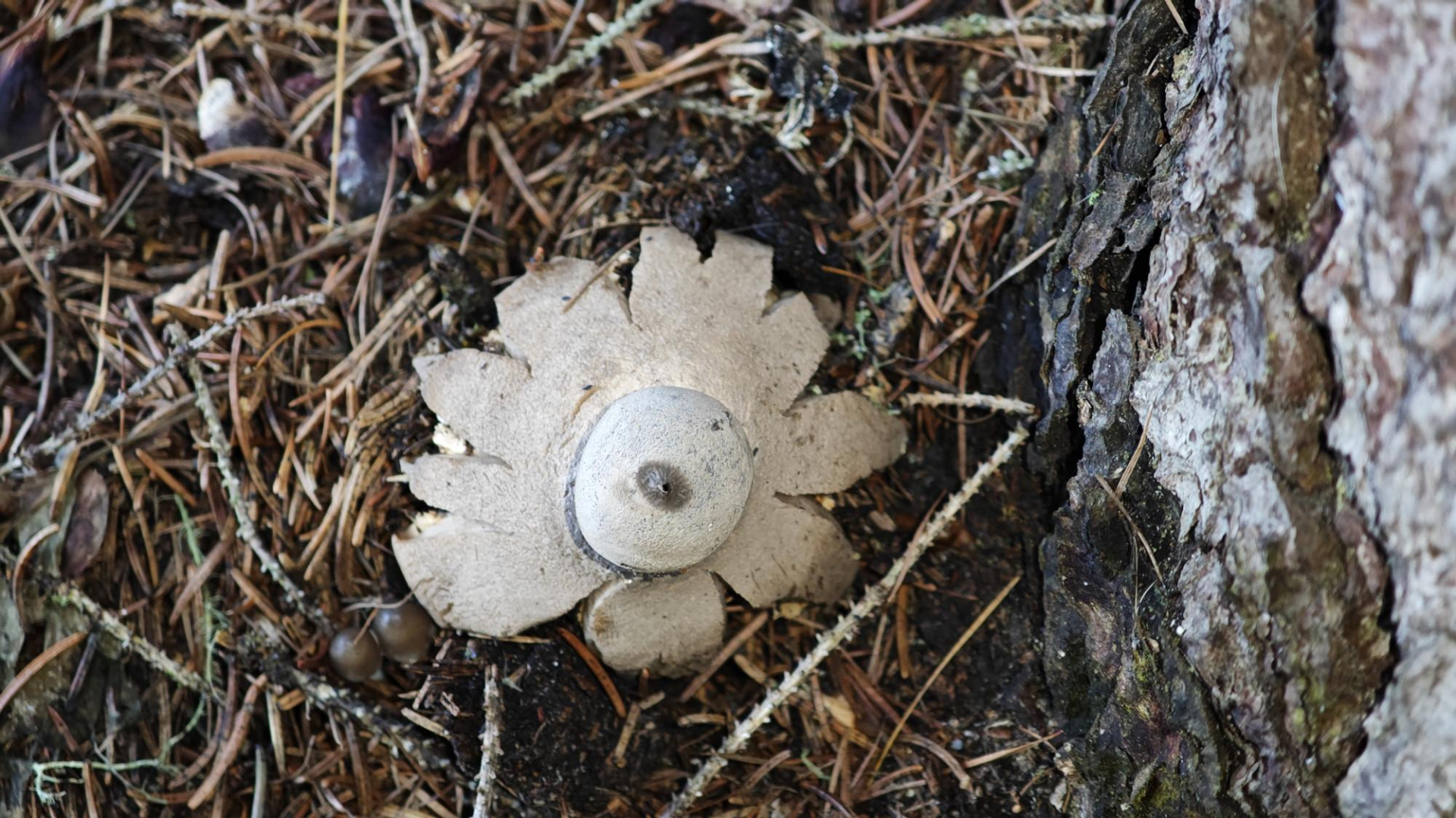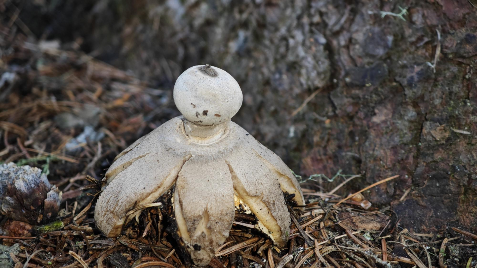 5. Dann gab es für mich wieder einen Grund zur Freude. Ich habe bei uns in den Bergen bisher noch nie einen Erdstern gefunden. Gewachsen ist dieser in den Nadeln einer Fichte. Ich kenne mich bei Erdsternen nicht gut aus, wäre aber bei Geastrum striatum - Kragen-Erdstern gelandet. Hier wäre ich aber froh, wenn das noch jemand bestätigen oder widerlegen könnte. Edit: Es dürfte sich wohl um Geastrum pectinatum - Kammerdstern handeln. Danke Werner Edelmann