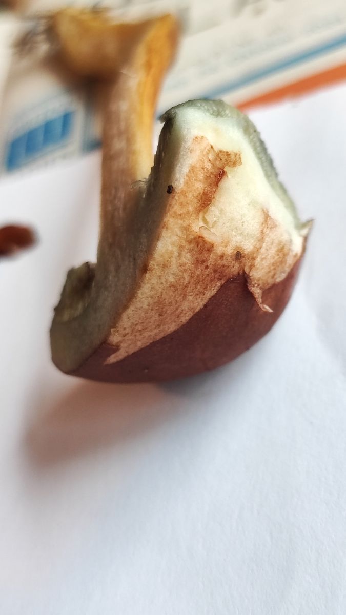 Die Lamellen bläuen bei Druck, was den Körnchen-röhrling ausschließt.