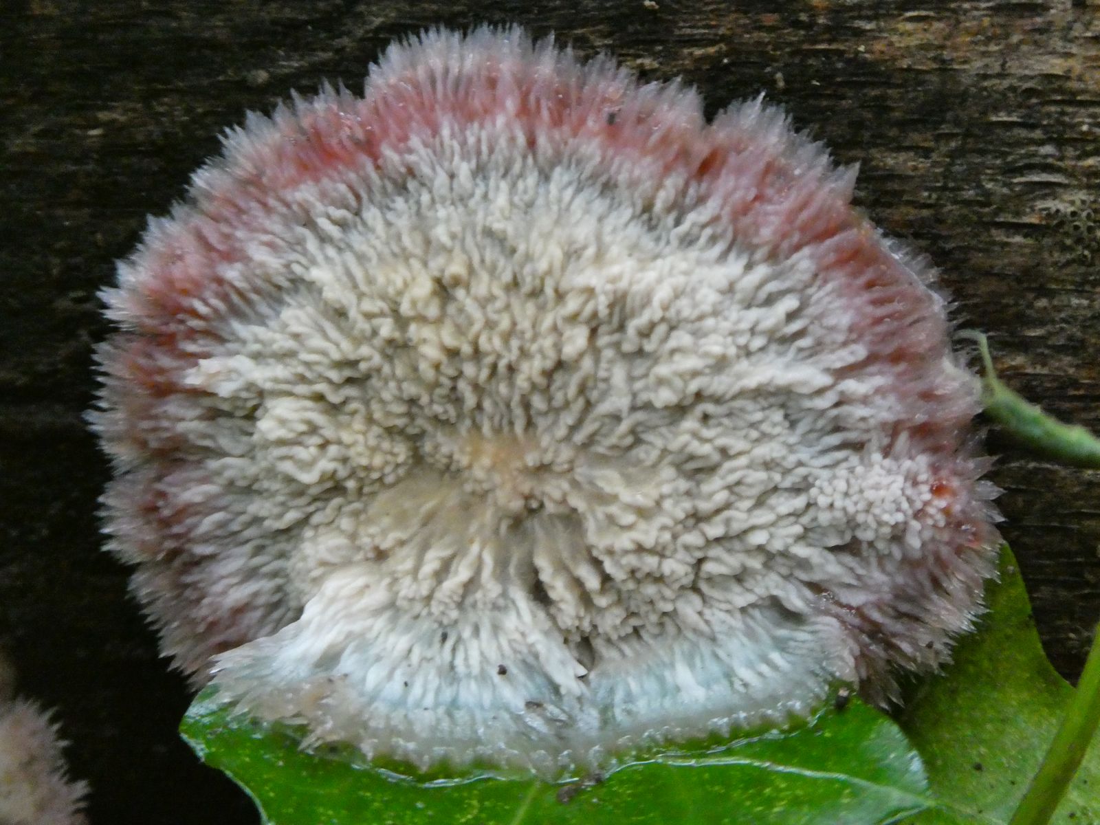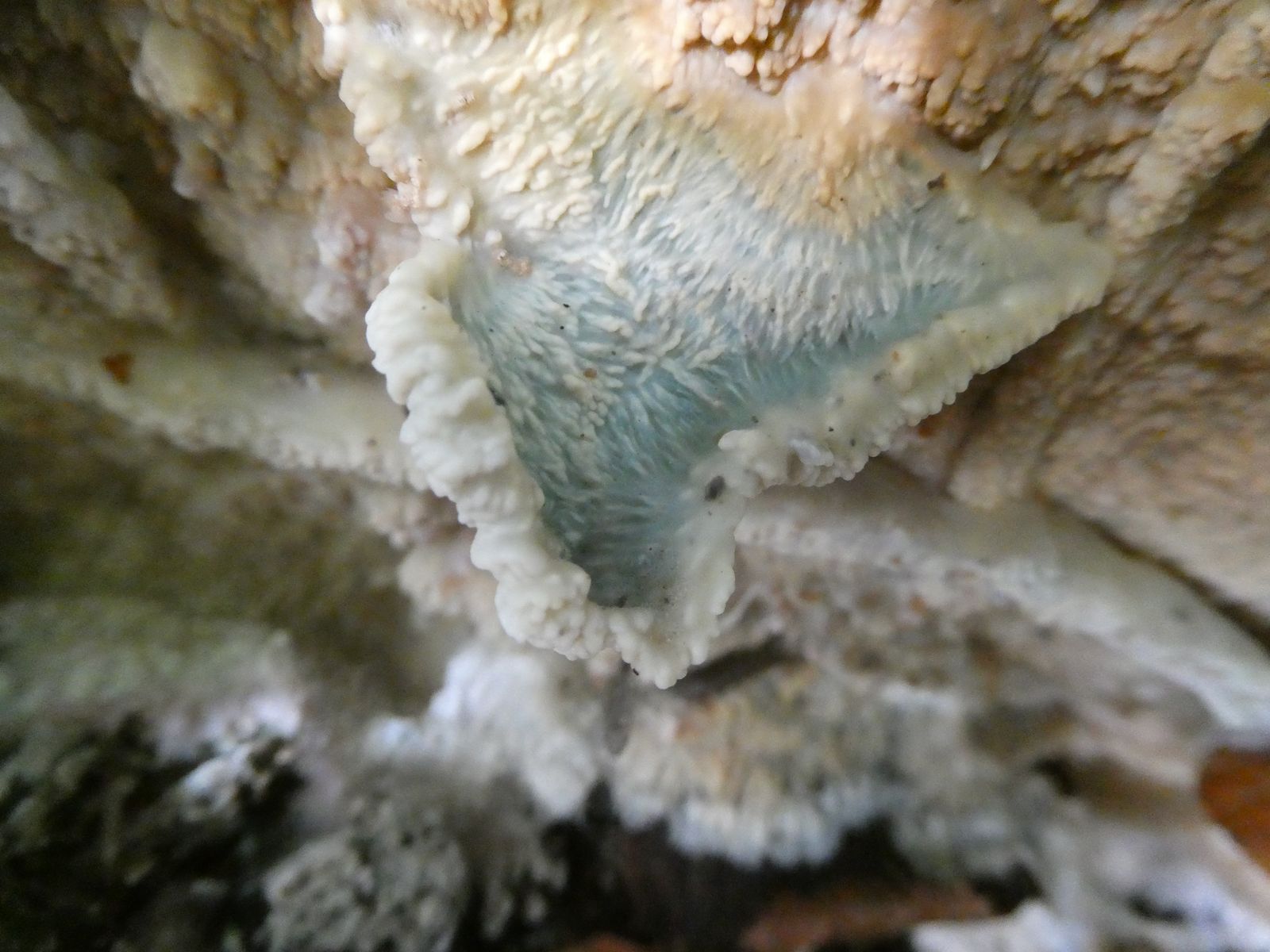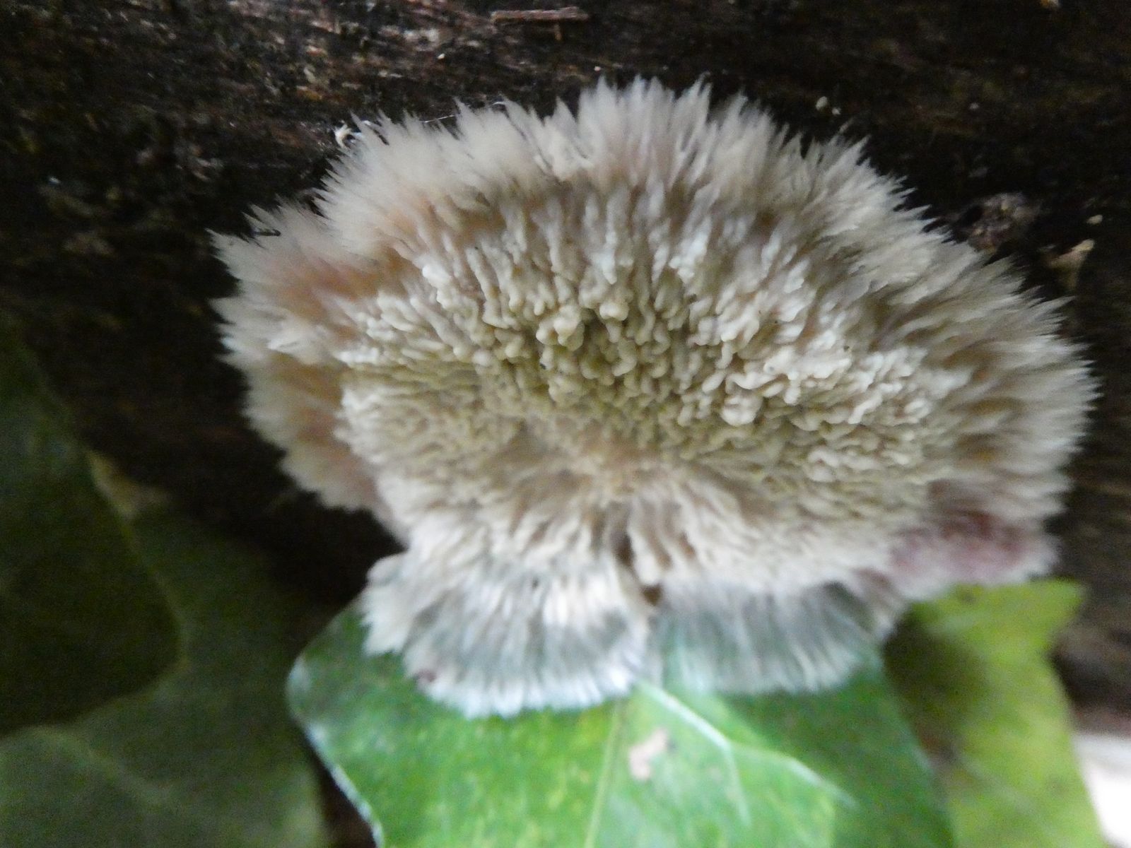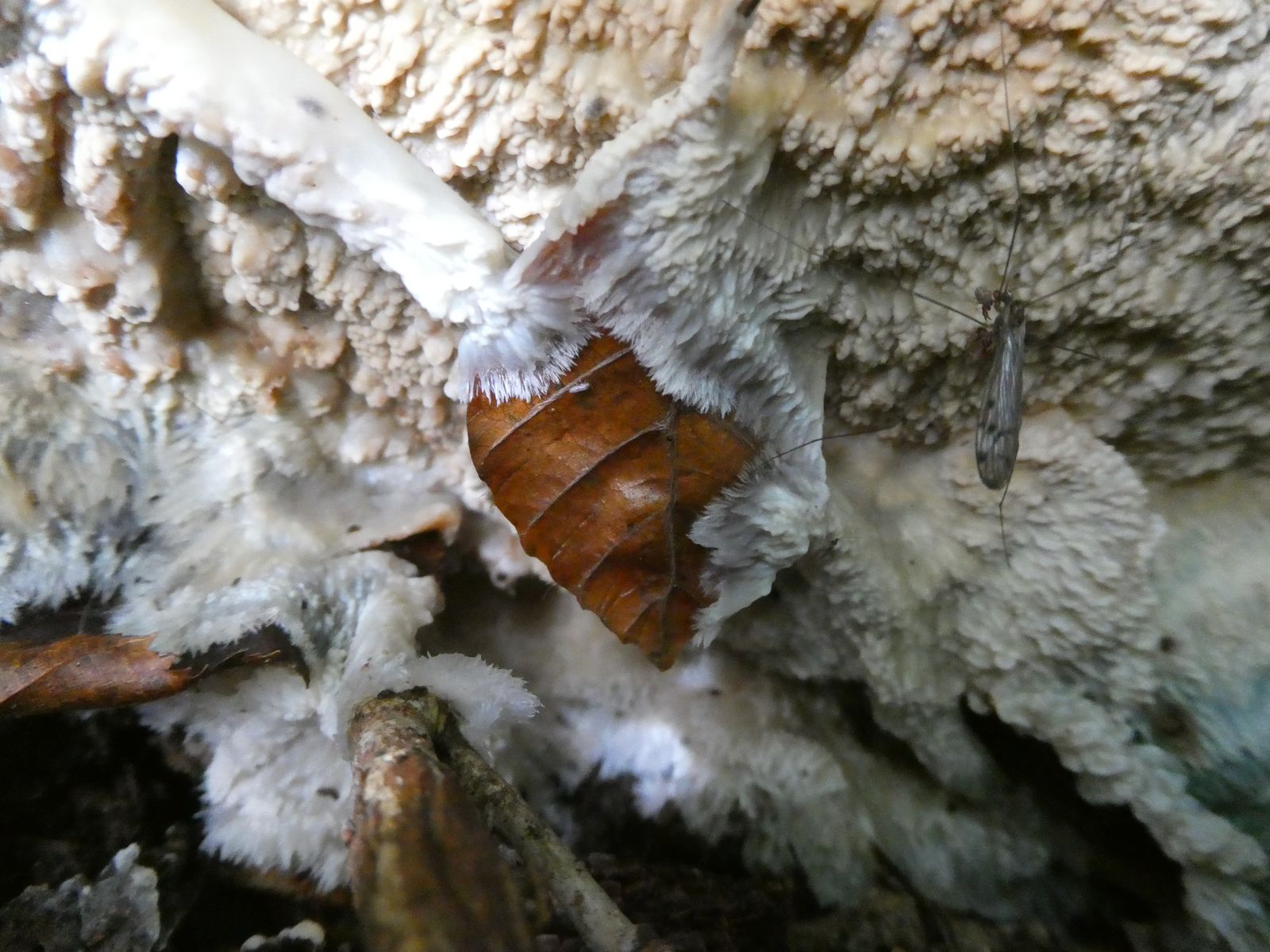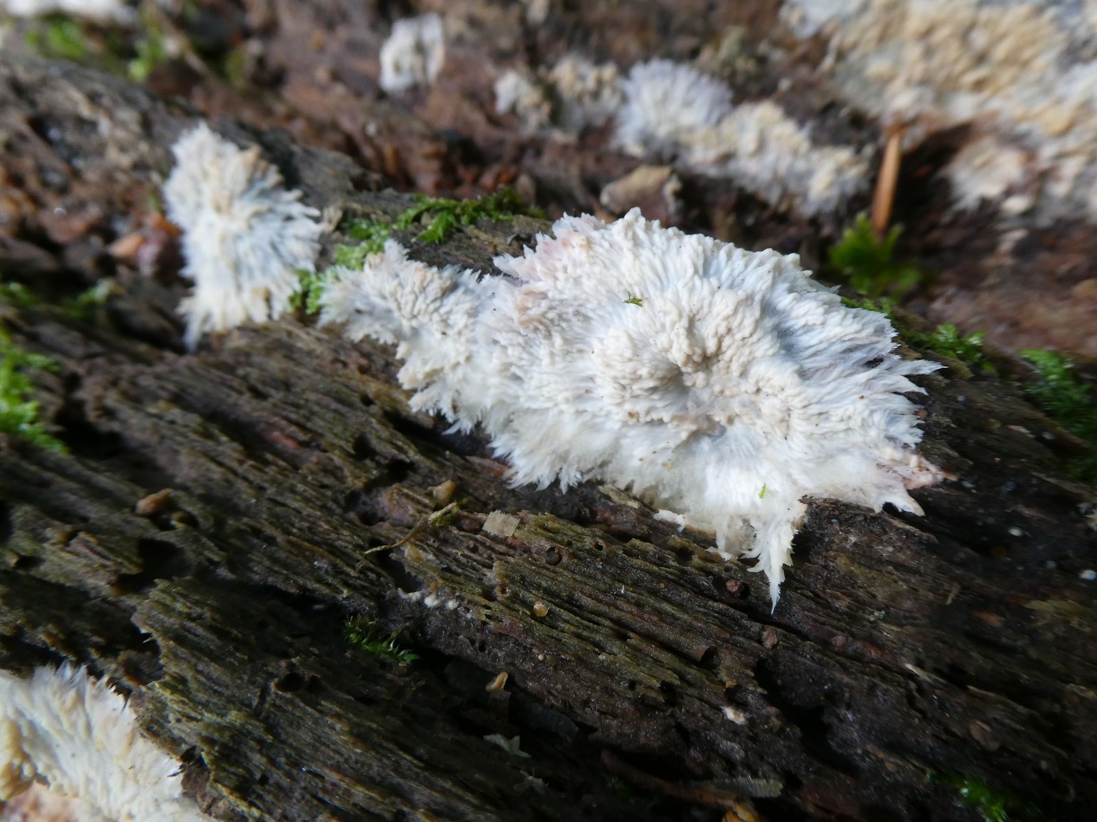Weißer Krustenpilz mit "Ausstrahlung"? --> Phlebia centrifuga (Heidelbeer-Kammpilz)