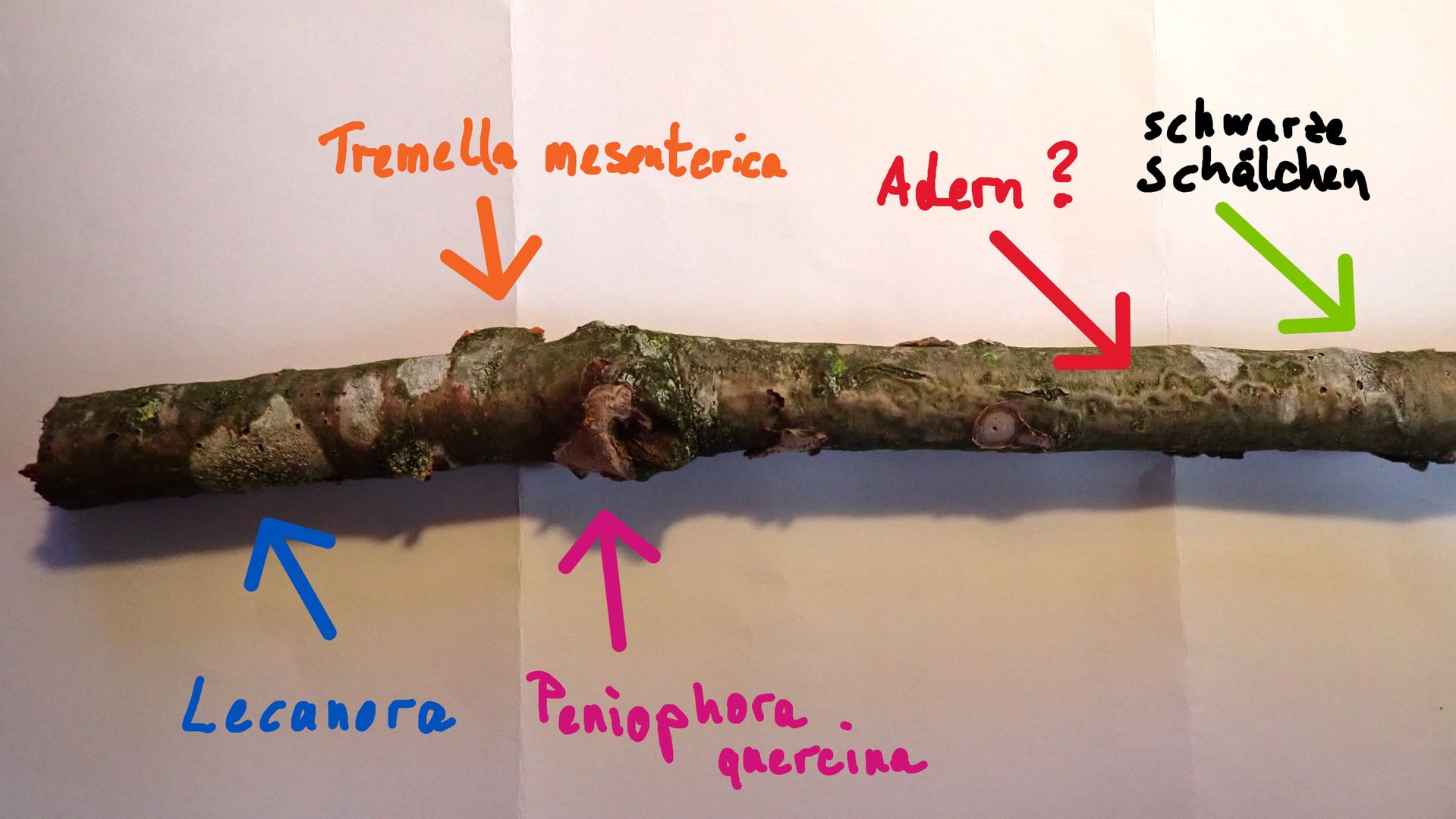 vorgestern habe ich auf einem dünnen Eichenzweig Tremella mesenterica gefunden. Und Peniophora quercina.