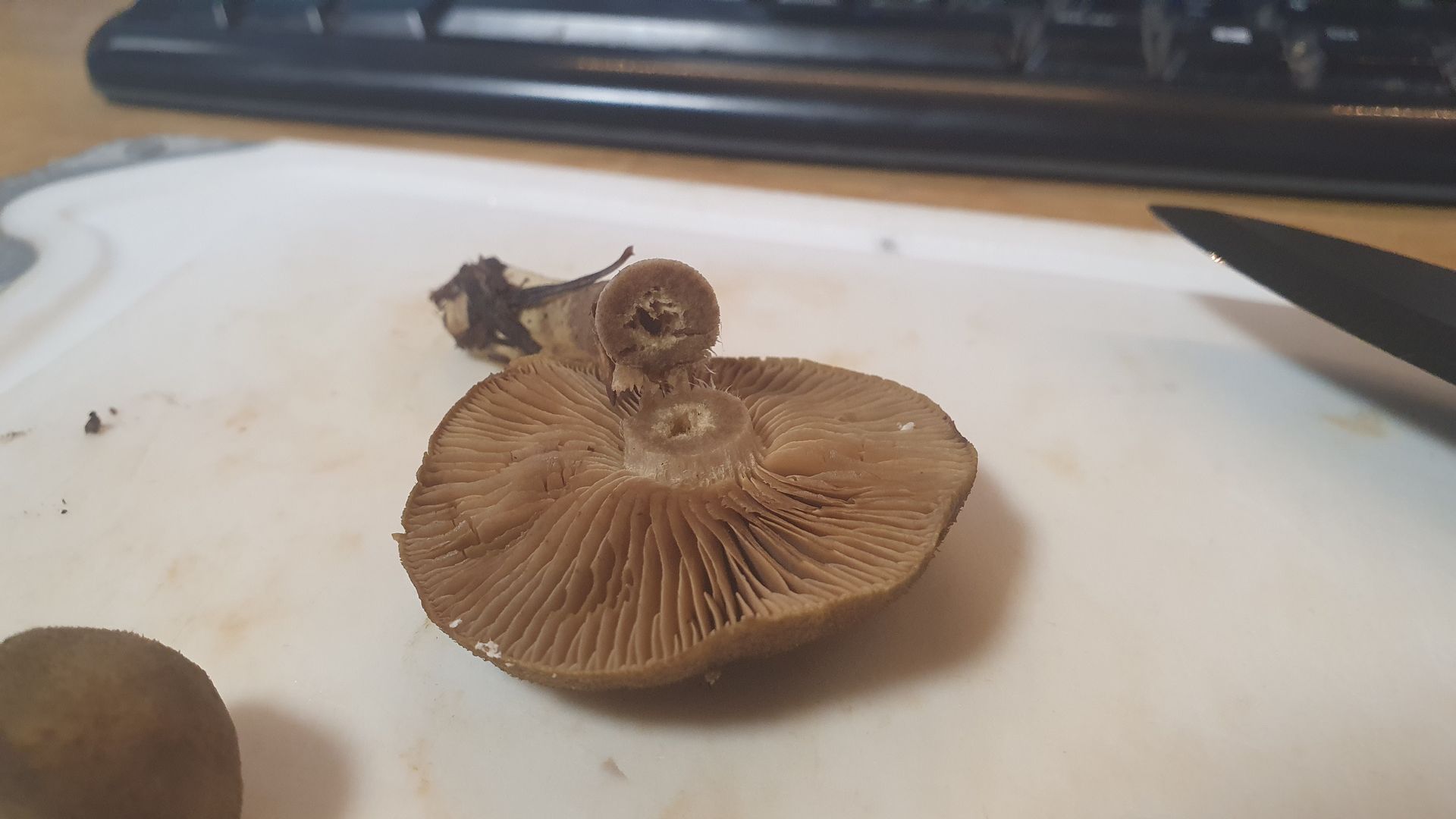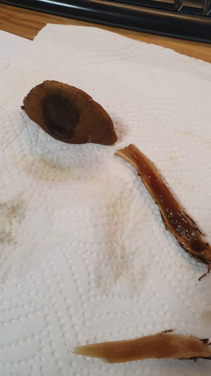 Sporen: Der Pilz blieb über Tage feucht, aber gab nur einen minimalen Sporenabdruck, welcher braun war.
